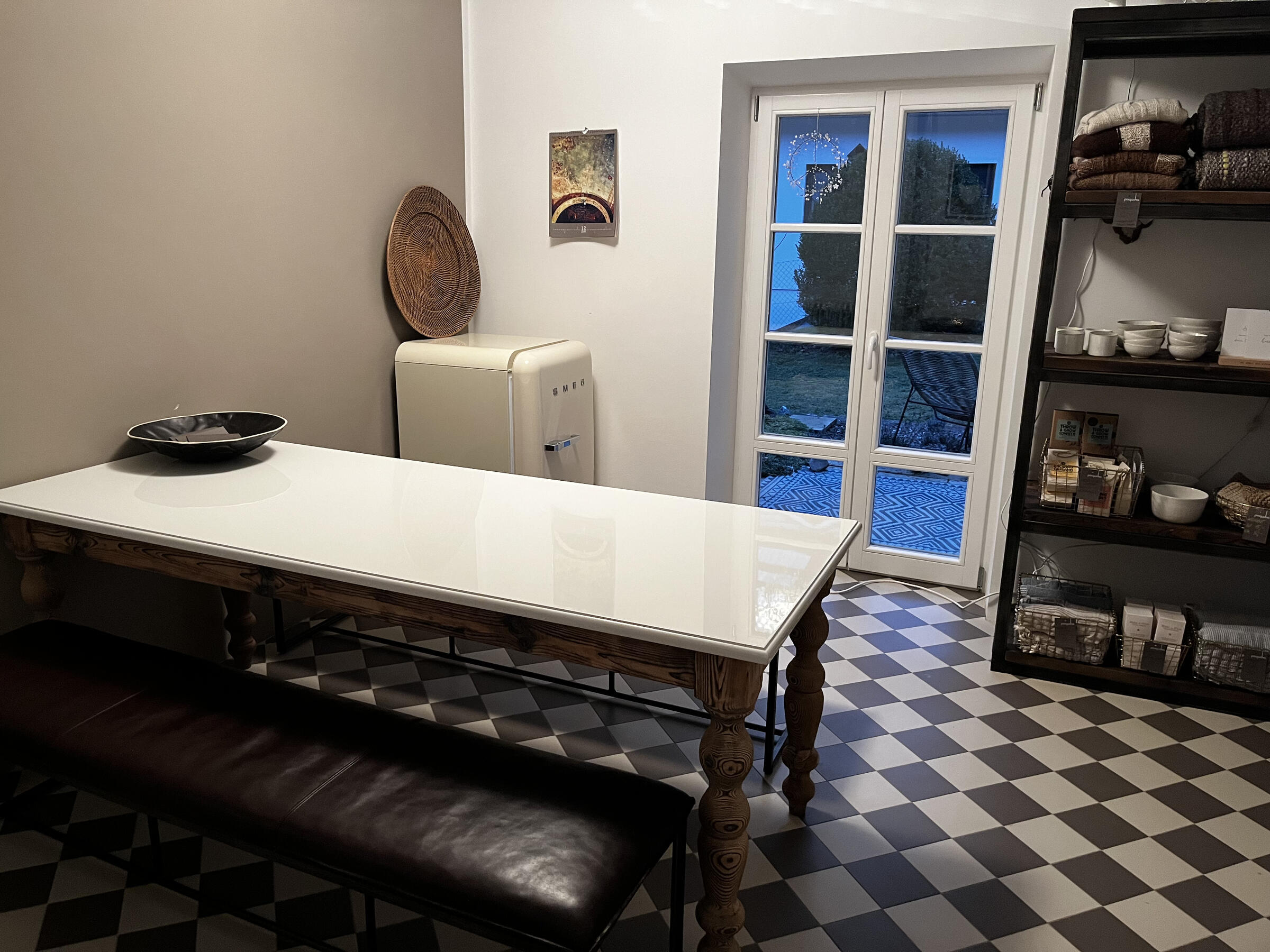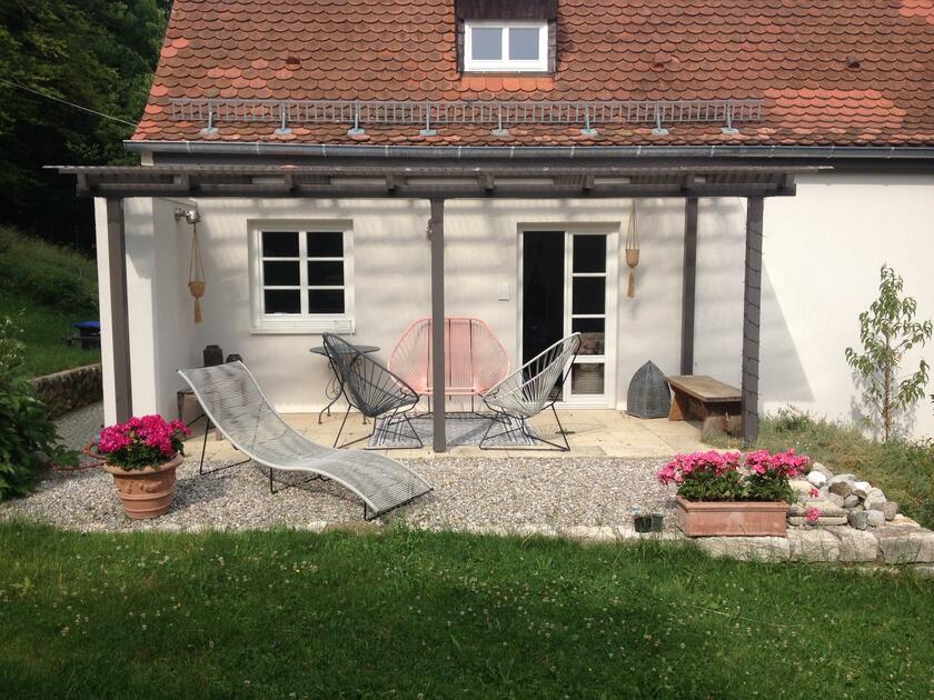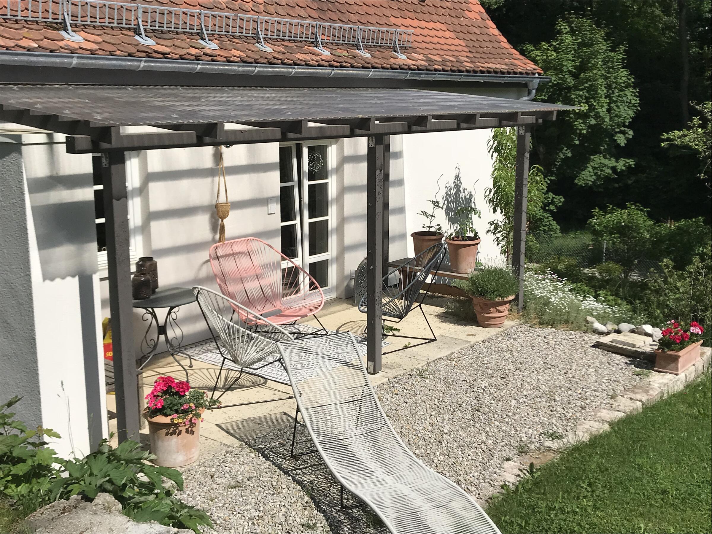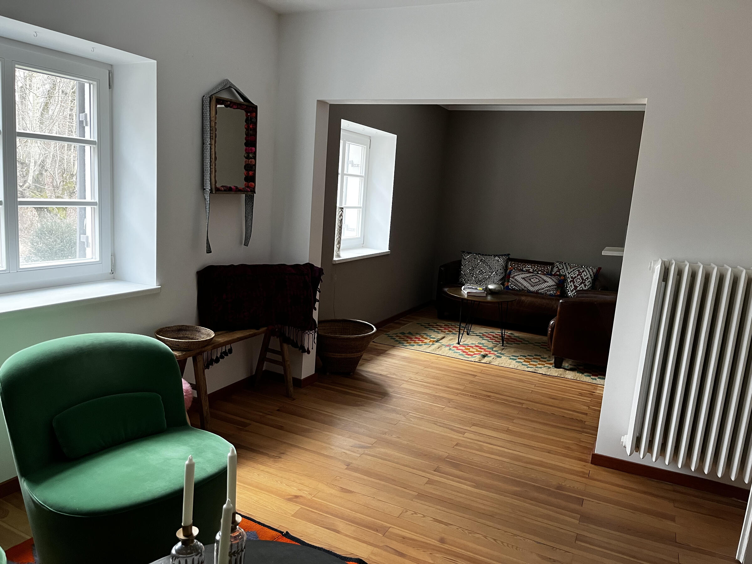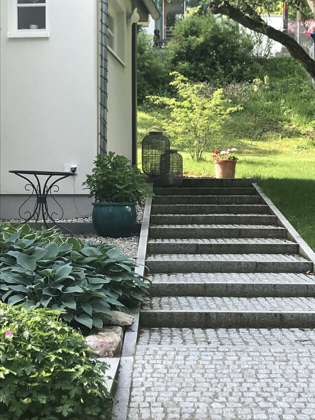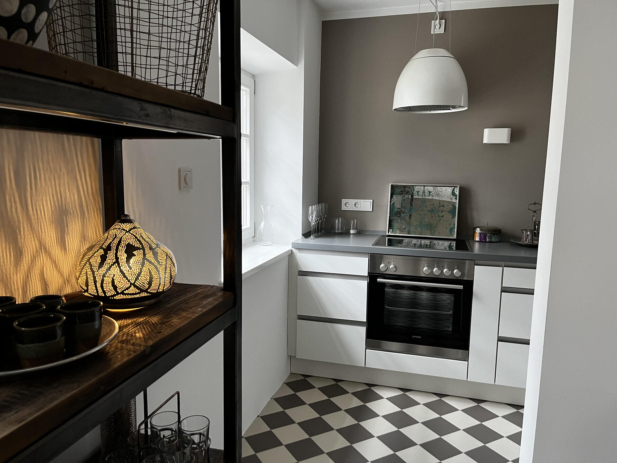 Es handelt sich um ein Einfamilienhaus aus den 1930er Jahren. Umgeben ist es von einem quadratischen, mit Terrassen angeordnetem Garten, der wunderbar eingewachsen ist. Wir haben das Haus eigenhändig mit viel Aufwand renoviert und es mit viel Herzblut individuell eingerichtet und ausgestattet. Das Haus ist sehr modern und minimalistisch gestaltet und eingerichtet. Die Räume sind zwar nicht sehr groß, jedoch wunderbar geschnitten, sodass sie sehr flexibel eingerichtet und verwendet werden können. Die Einrichtungsgegenstände sind sehr hochwertig und an den Wänden hängt moderne Kunst, Metallkunst oder hochwertige Drucke. Die Küche, das Bad und WC sind top eingerichtet und ausgestattet. In Flur, Küche, Bad, WC und Essbereich wurden, dem Altbau angemessen, Fliesen in Schachbrettmuster verlegt. Im Wohnbereich konnte das alte Parkett erhalten werden. Im oberen Stockwerk wurde wertiges Laminat verlegt. Es hat eine sehr besondere und gemütliche Atmosphäre, sodaß sich alle Menschen, die es betreten, sofort wohl fühlen. Wir nutzten das Haus temporär als Pop-up-Store oder für geschäftliche Meetings. Auch wird es als Gästehaus für private Freunde genutzt. Es ist daher wunderbar flexibel einsetzbar, sowohl zeitlich, als auch von der Nutzung her. Drehstrom läßt sich bei unserem Wohnhaus einstecken. Außerdem kann unser 1.600 m² großes Grundstück als Parkfläche mitbenutzt werden.