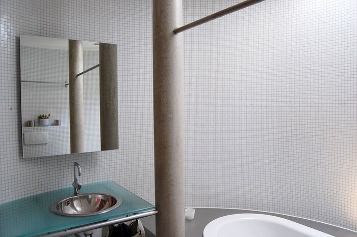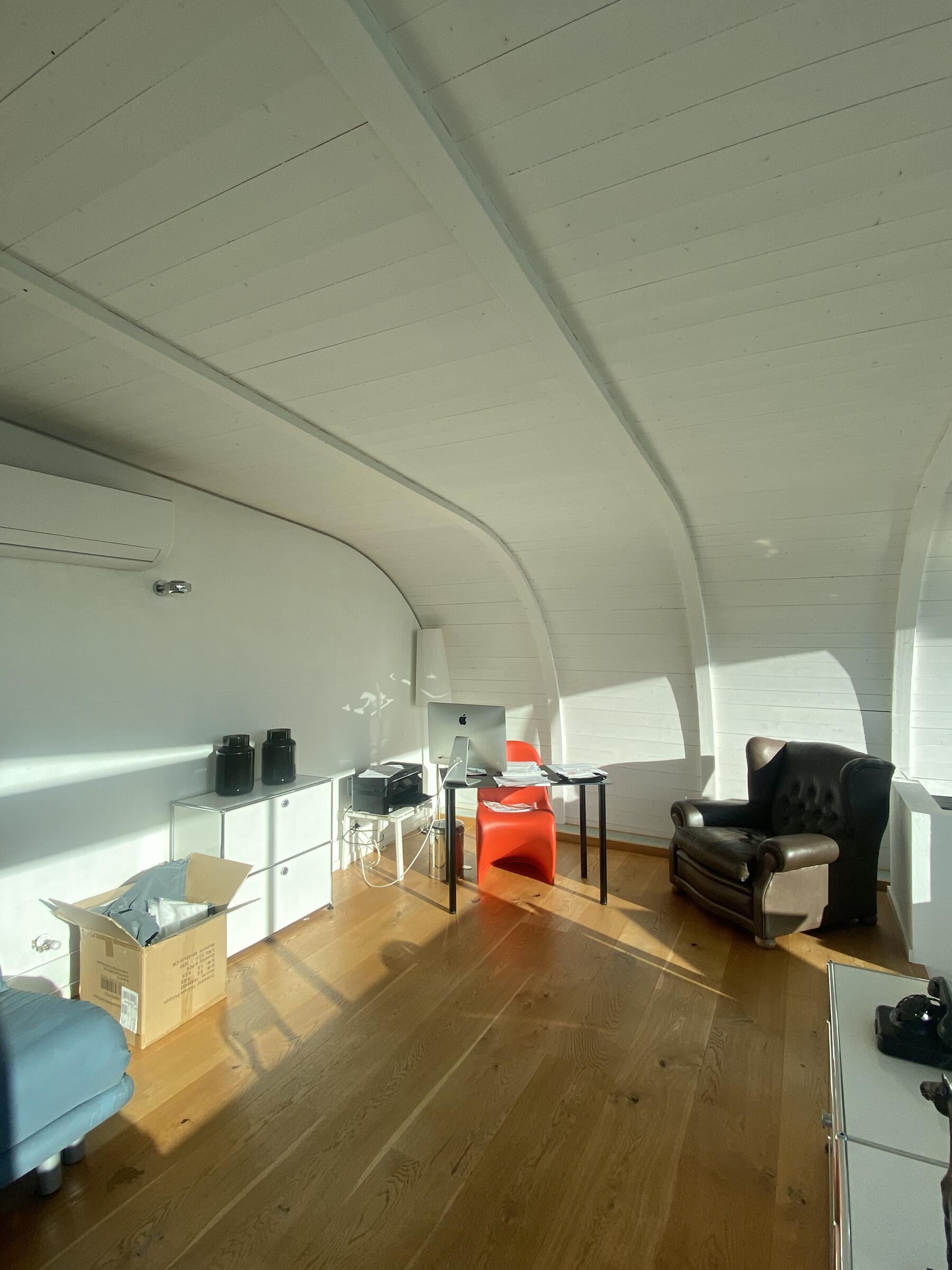 Alle Räume im Inneren des Wohnhauses können für Film- und Fotoproduktionen gemietet werden. Im unteren Geschoss des architektonisch interessanten Hauses befinden sich Wohnräume und Bäder und Zugänge zum Garten. Vom Vorplatz des Hauses kommt man über eine Gartentreppe auf einen sonnigen Freisitz, der auch von der Wohnküche aus erreichbar ist. Das Haus ist hell, freundlich und mit modernen Möbeln und Dekorationselementen ausgestattet. Ohne Zwischenwände ist der Blick von der Küche über den Essbereich ins Wohnzimmer möglich. Große Fenster und ein heller Holzboden unterstützen den lichten Charakter des Hauses. Eine Holztreppe führt in den Bereich des Dachgeschosses. Zur Sonnenterrasse, die einen schönen Ausblick auf die ländliche Umgebung und den nahen See bietet, kommt man über ein Terrassenvorzimmer, das von drei Fensterseiten beherrscht wird. Teamaufenthalt, Garderobe, Maske oder Catering finden geeignete Räumlichkeiten in diesem lichtgeprägten Haus. 3 Parkplätze stehen auf Anfrage zur Verfügung.