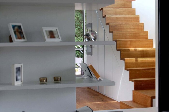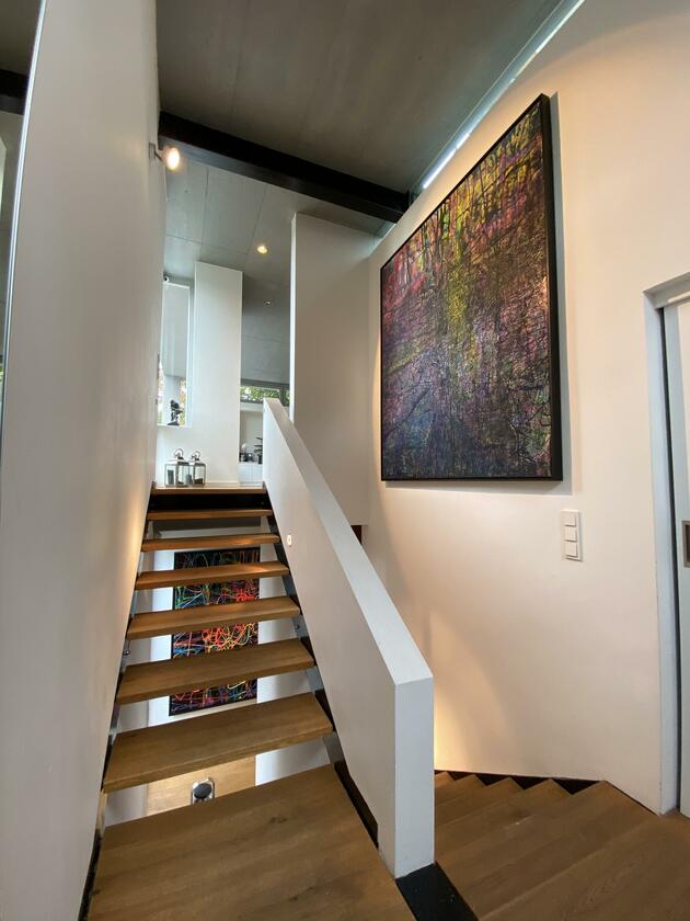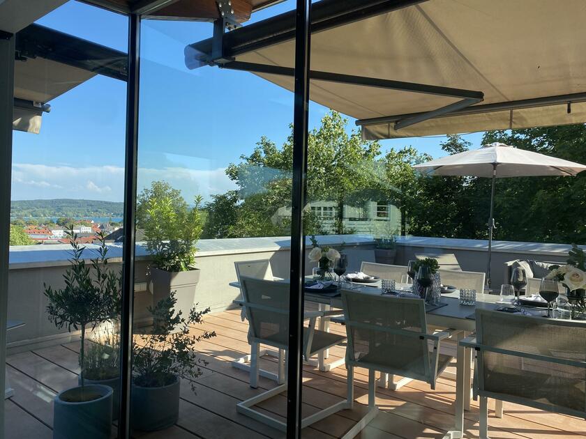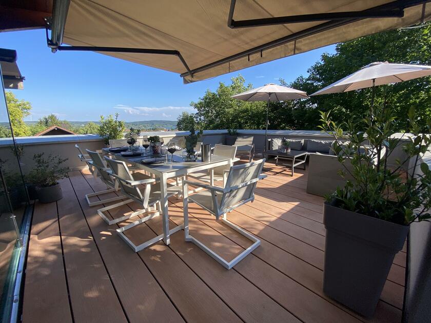 Das moderne Einfamilienhaus in Starnberg ist umgeben von einem Garten und besitzt eine große Dachterrasse mit See- und Panoramablick. Das Haus hat 340 m² und geht über 6 Etagen (SplitLevel) wobei die Hauptetagen mit Zwischenetagen versehen sind.