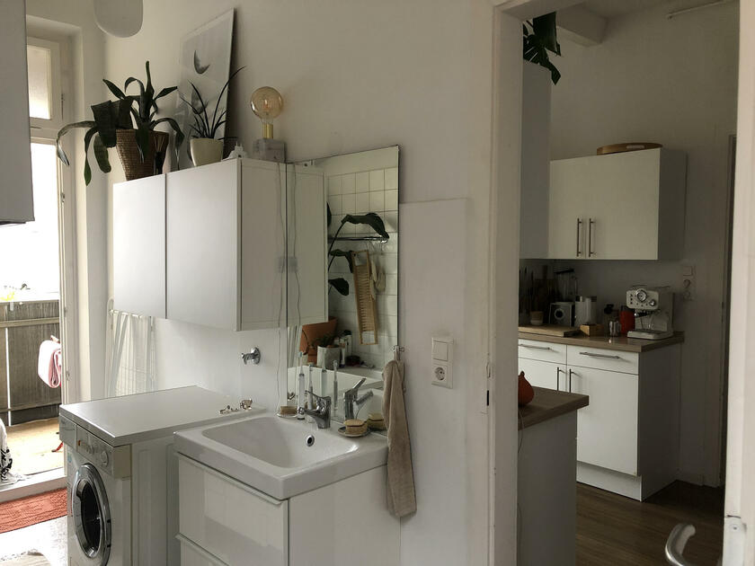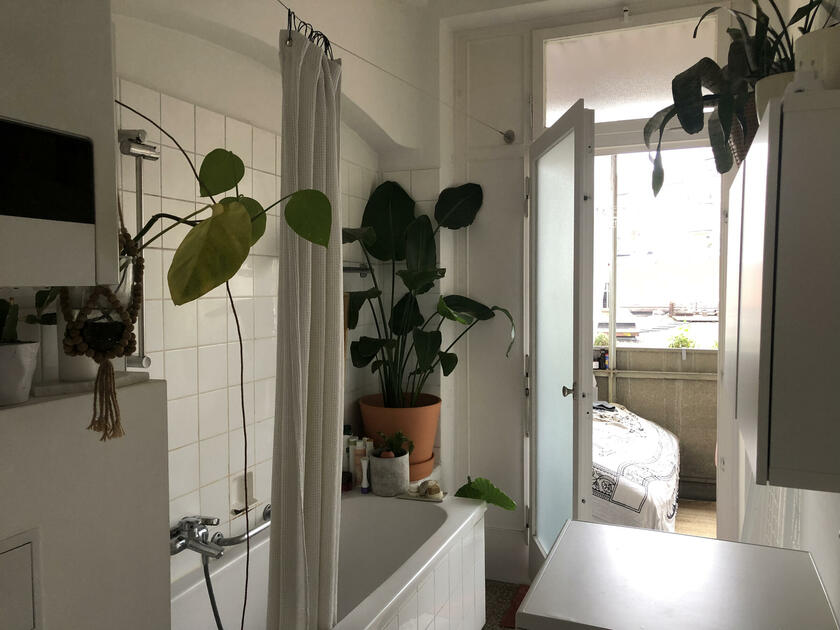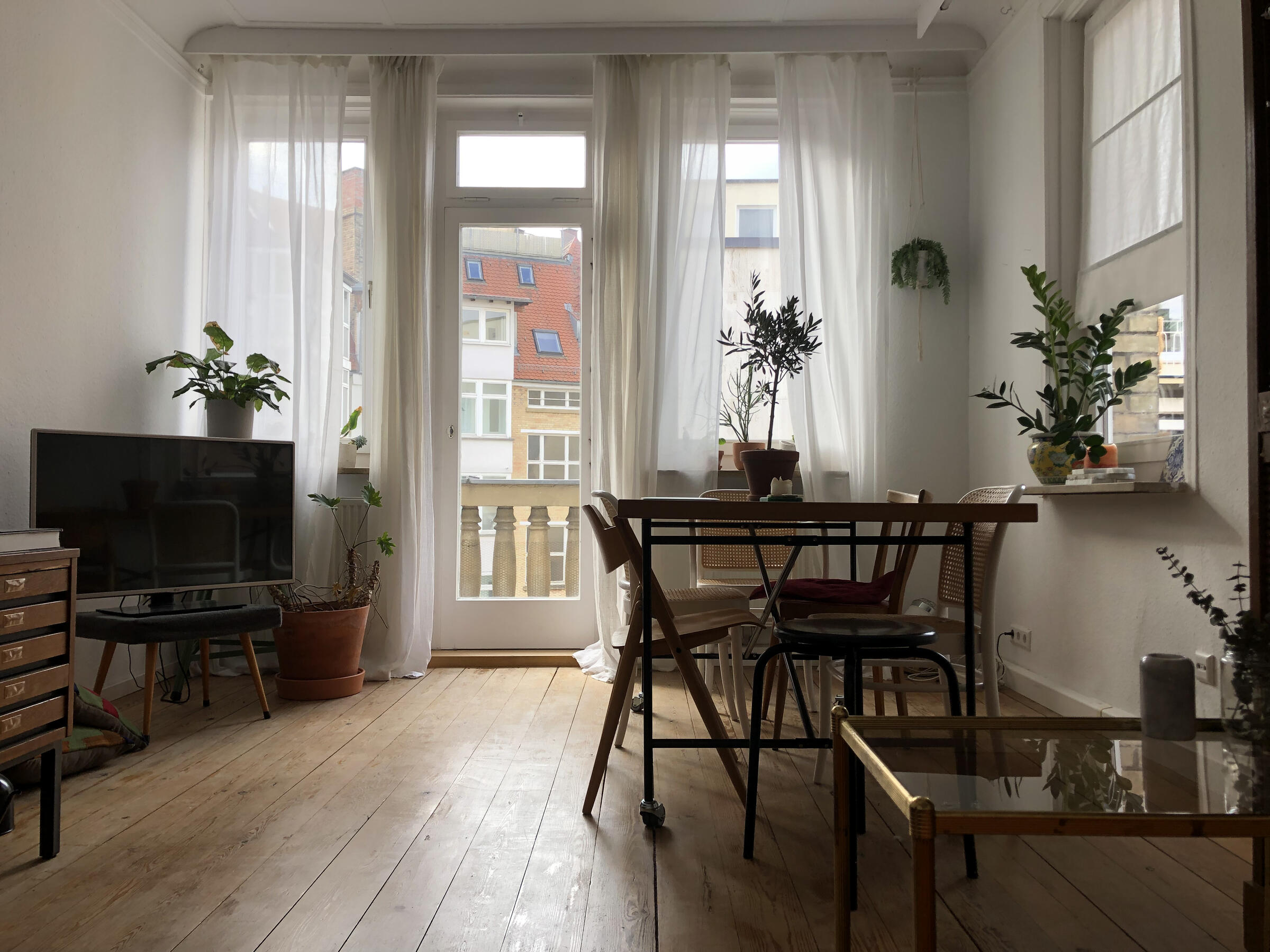 Die typische Stuttgarter Altbauwohnung bietet ca. 90 m² Fläche und befindet sich im 3. OG eines Mehrfamilienhauses im Jugendstil. Die helle und geräumige Wohnung ist mit ausgewählten Designerstücken und Flohmarktfunden ausgestattet und eingerichtet. Vom großen Wohnzimmer führt ein französischer Balkon nach draußen. Von der Küche und dem Bad gibt es jeweils einen Zugang zum großen Balkon mit Blick in eine wunderschöne Hinterhofkulisse. Der alte und gut erhaltene Dielenboden, der Stuck an den Decken sowie die original Fliesen in der Küche verleihen der Wohnung einen besonderen Charme.