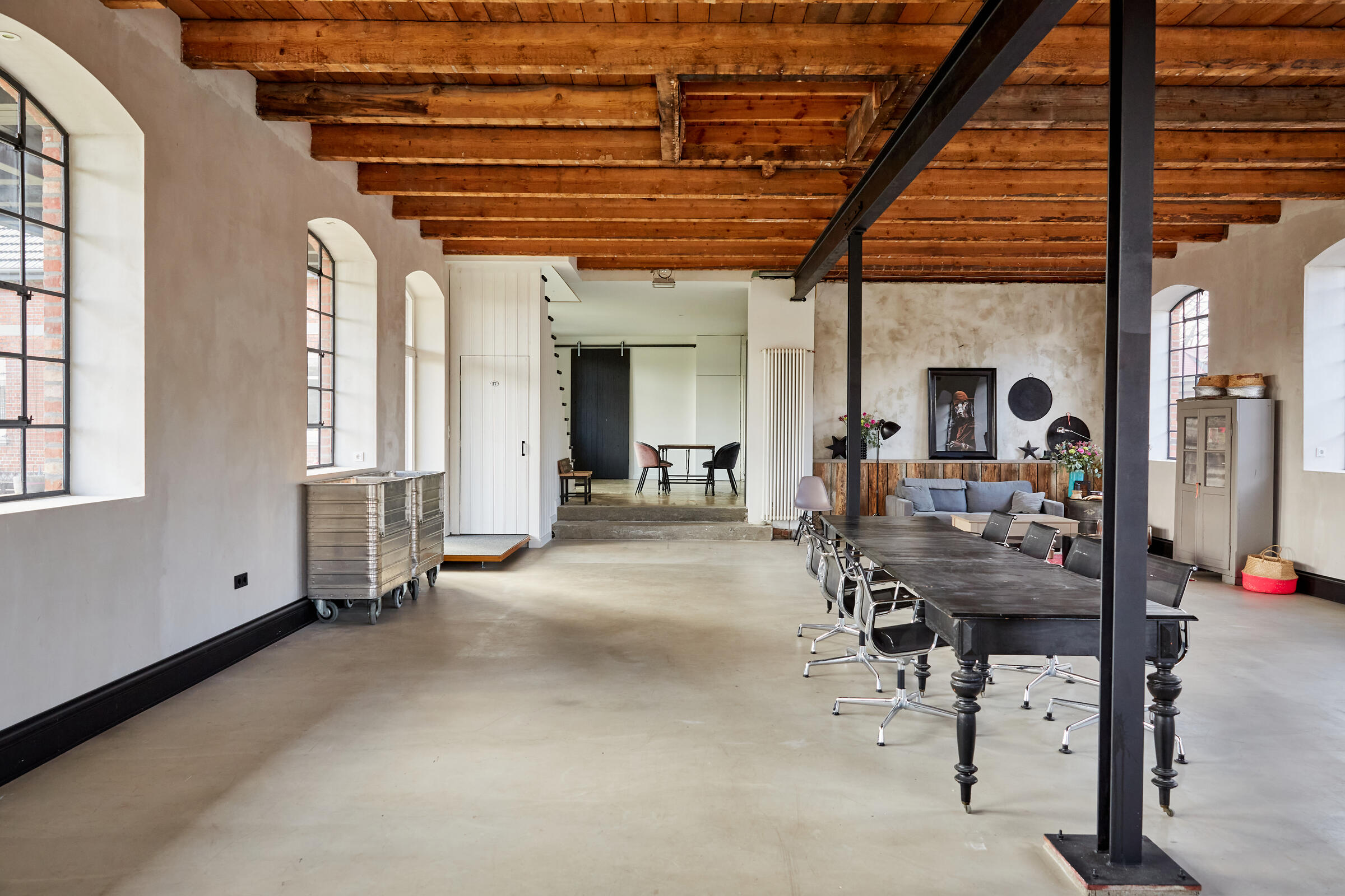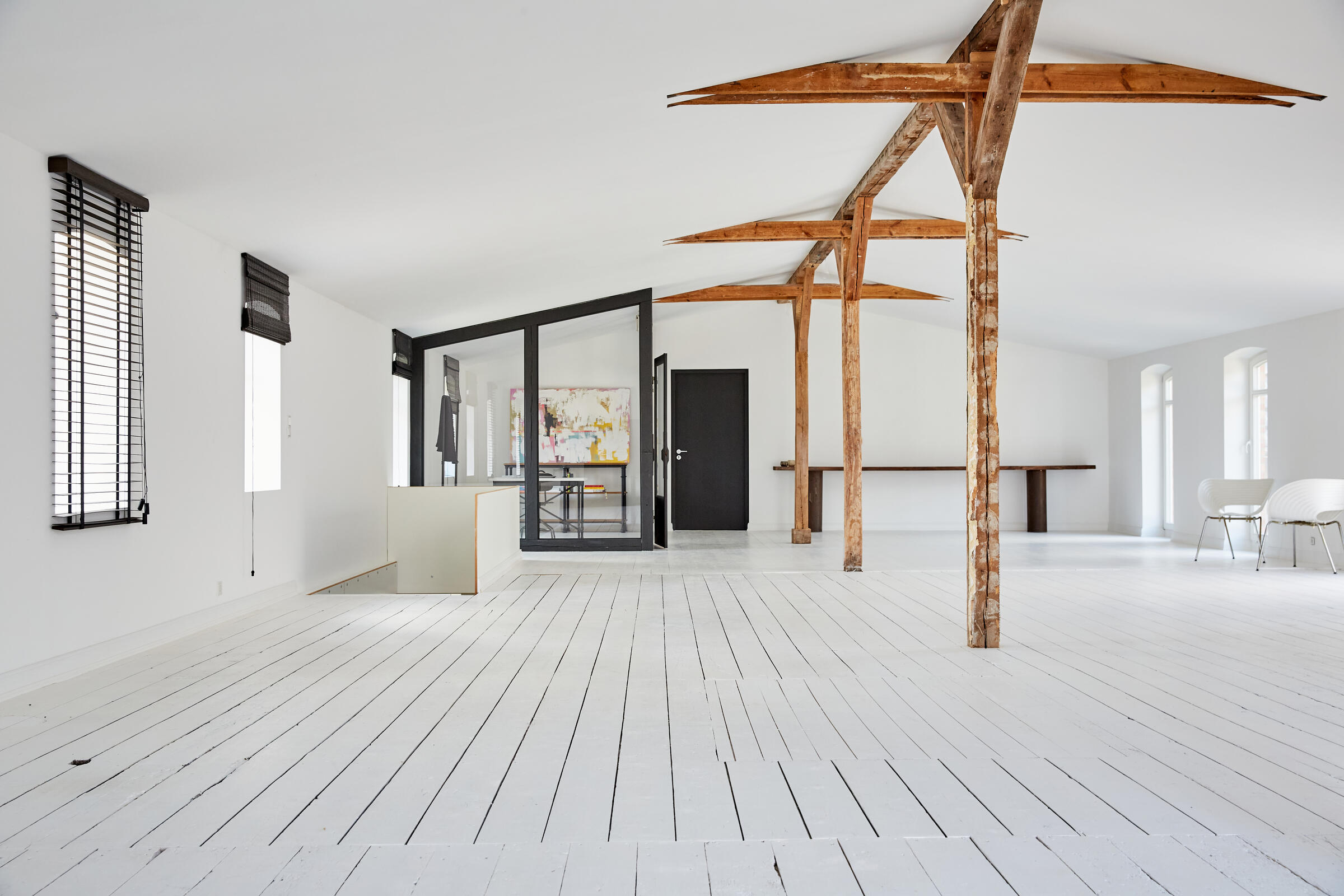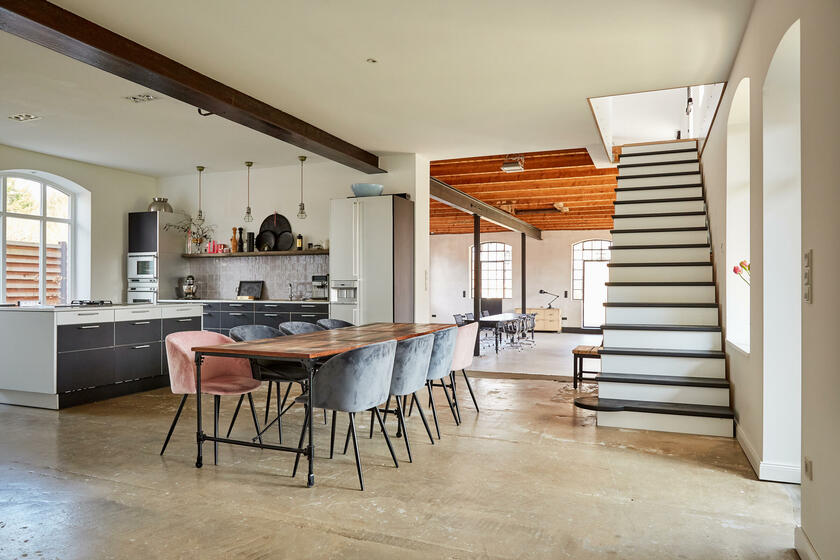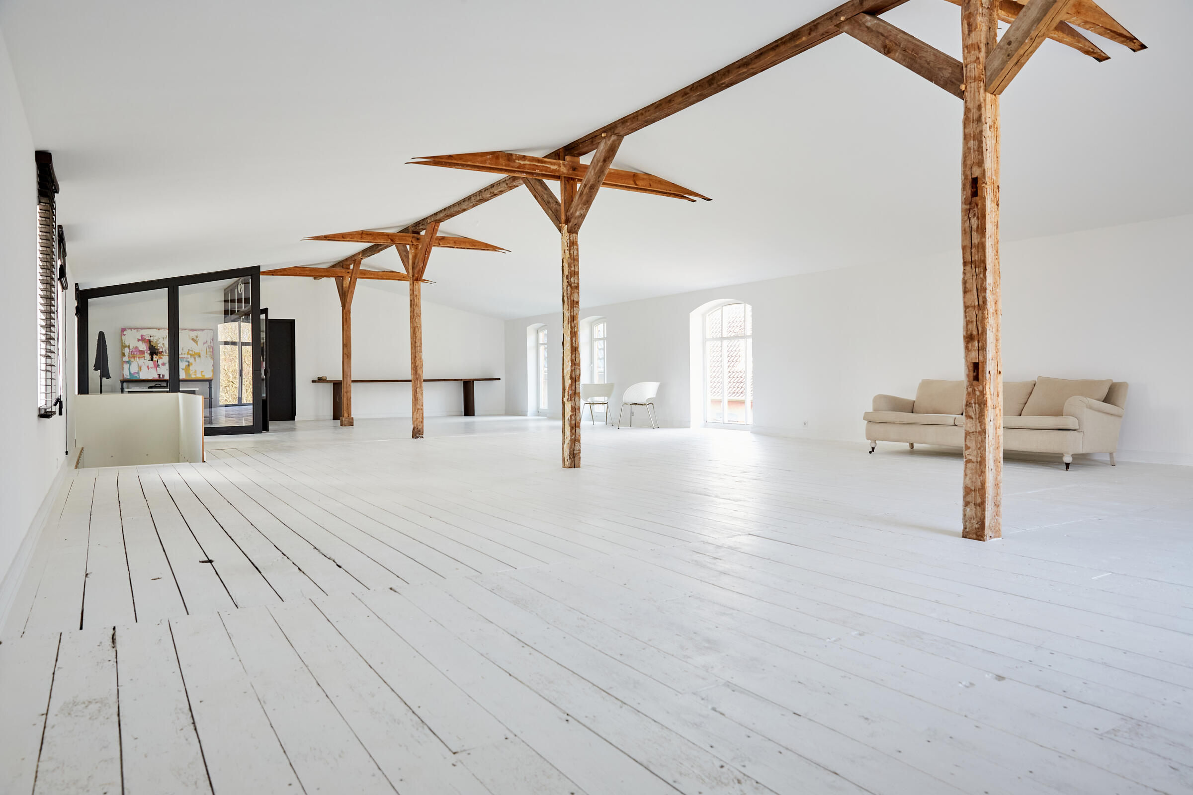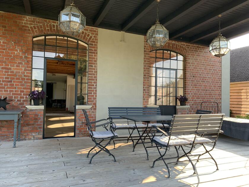 Mein Studio befindet sich ca. 30 km südlich von Hamburg und bietet 300 m² Innenfläche und 2.700 m² Garten- und Terrassenfläche. Die Räume teilen sich auf in 3 Bereiche. Der 1. Studiobereich ist ein Daylight Studio im Loftstil und besticht durch seine großzügigen Stahlfenster, die Raumhöhe und seinen industriellen Charme. Außerdem bietet es Zugang zur Studioküche und zur umlaufenden Veranda mit Outdoorküche und zur Terrasse. Der 2. Studiobereich ist ein Mix von alten und neuen Materialien im einheitlichen Weiß für endlose Gestaltungsmöglichkeiten. Der 3. Studiobereich ist eine große und helle Küche im modernen Stil.