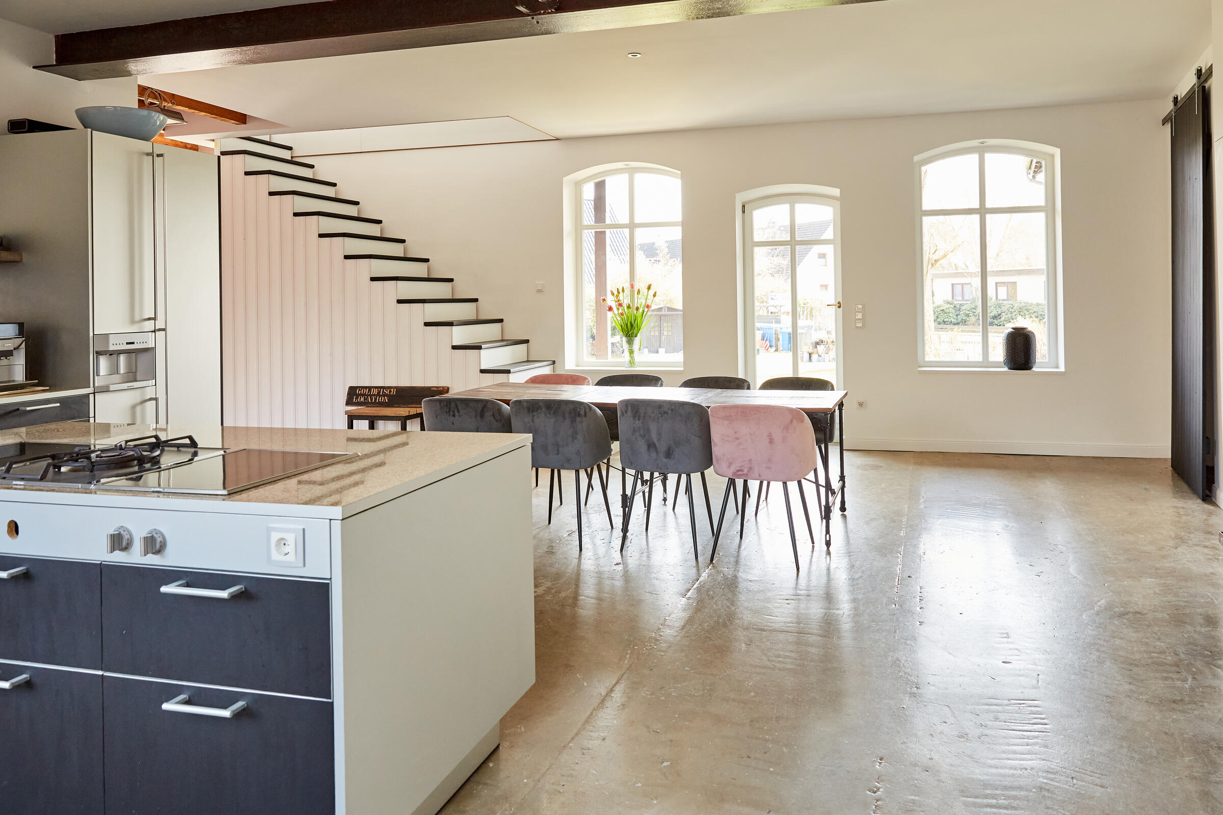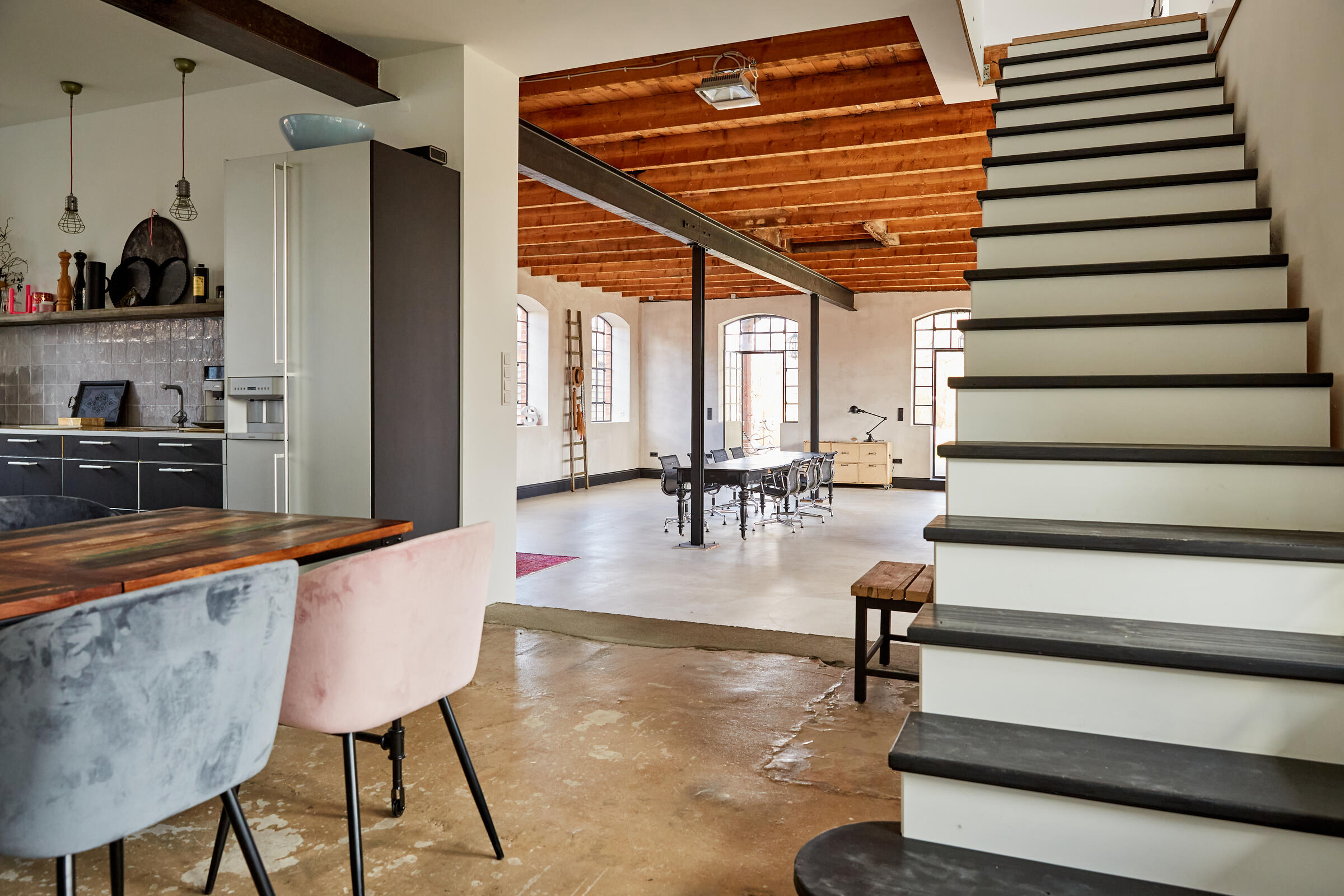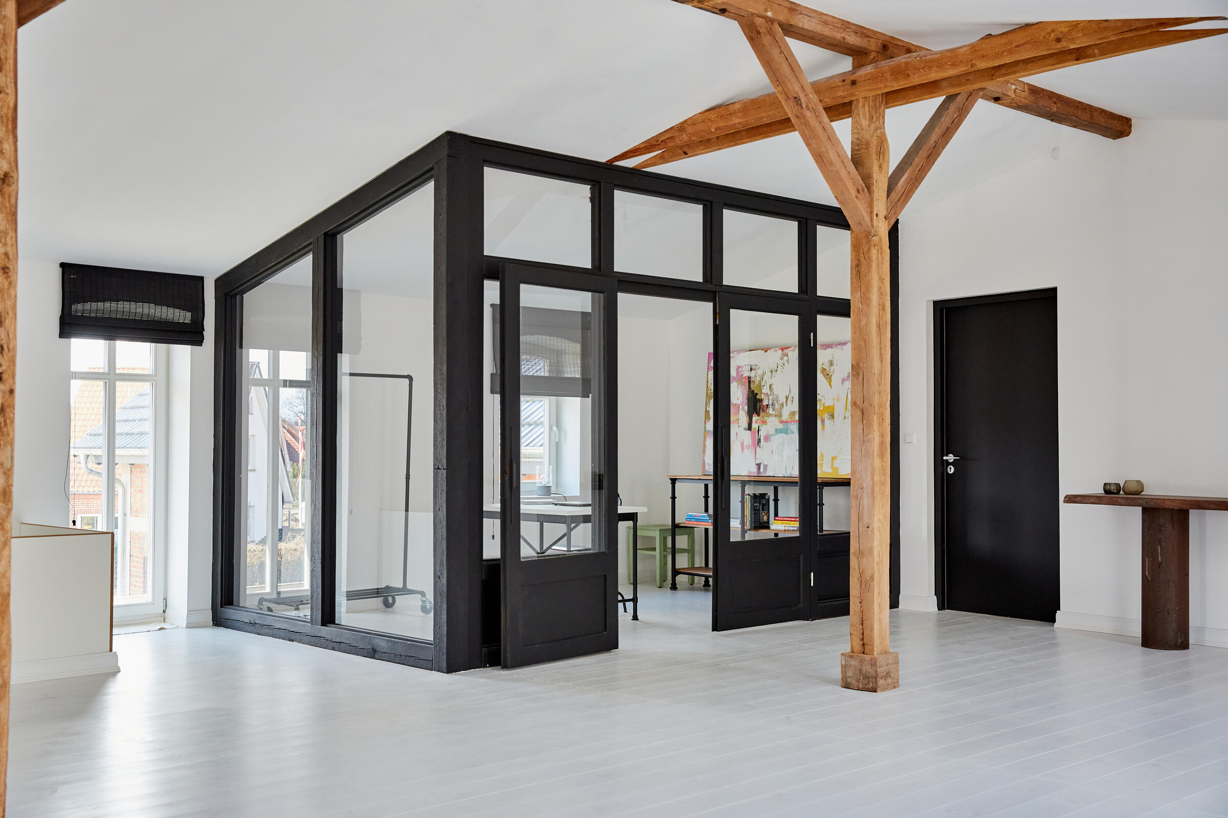 Mein Studio befindet sich ca. 30 km südlich von Hamburg und bietet 300 m² Innenfläche und 2.700 m² Garten- und Terrassenfläche. Die Räume teilen sich auf in 3 Bereiche. Der 1. Studiobereich ist ein Daylight Studio im Loftstil und besticht durch seine großzügigen Stahlfenster, die Raumhöhe und seinen industriellen Charme. Außerdem bietet es Zugang zur Studioküche und zur umlaufenden Veranda mit Outdoorküche und zur Terrasse. Der 2. Studiobereich ist ein Mix von alten und neuen Materialien im einheitlichen Weiß für endlose Gestaltungsmöglichkeiten. Der 3. Studiobereich ist eine große und helle Küche im modernen Stil.