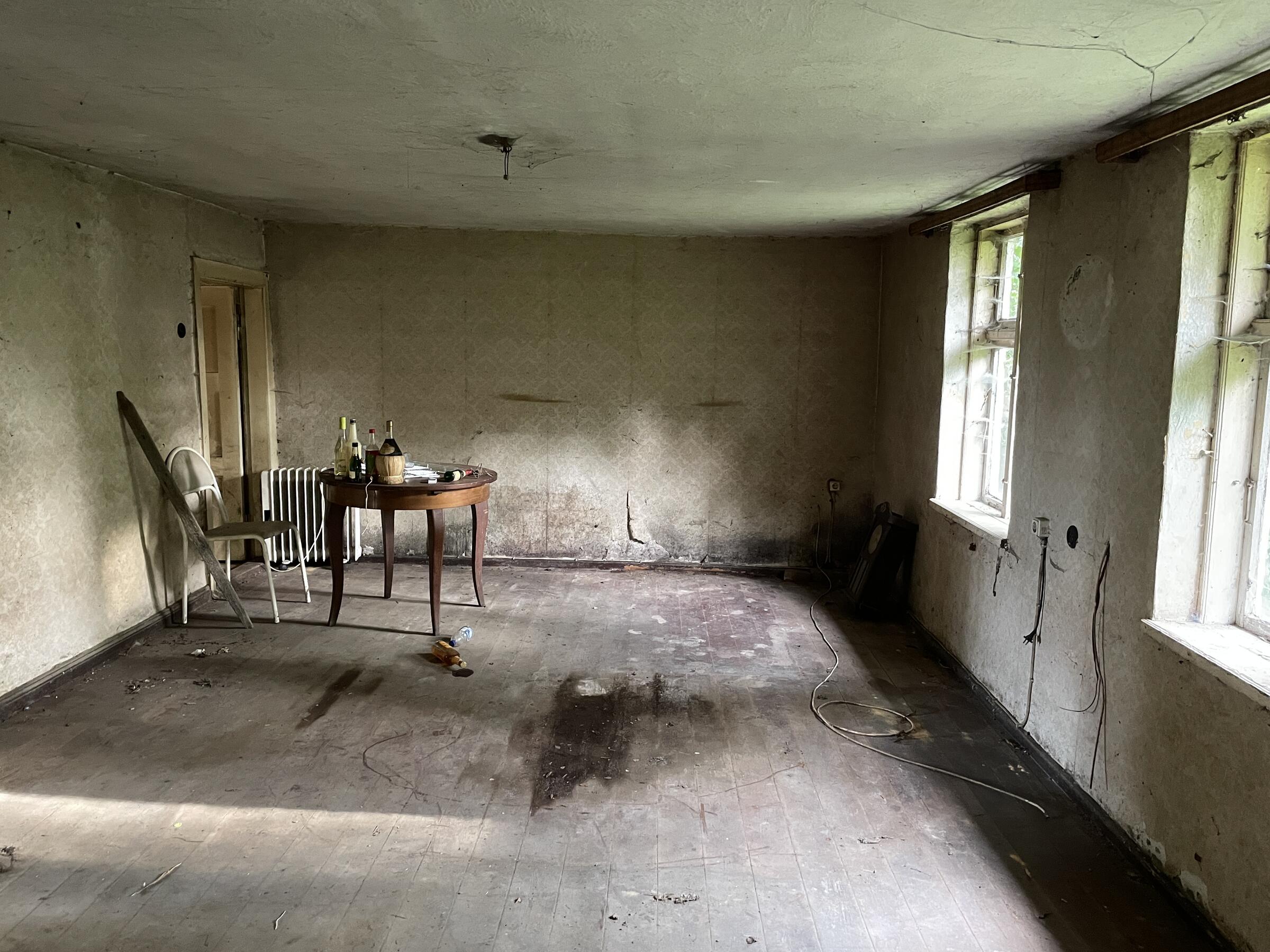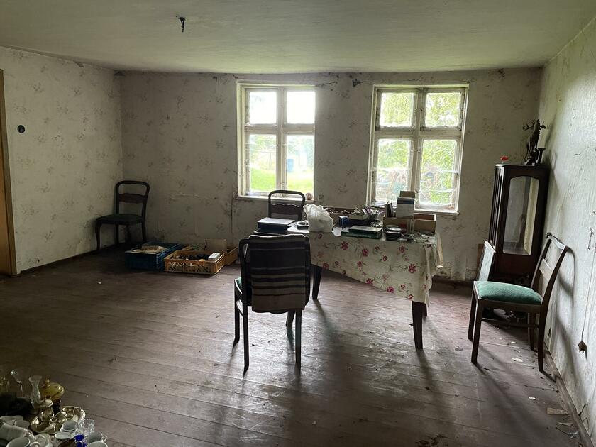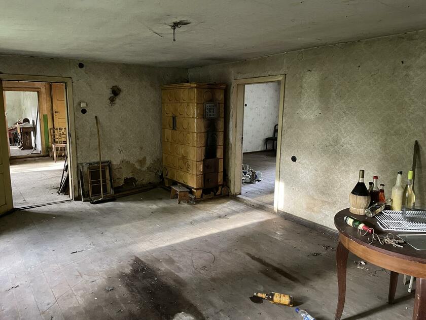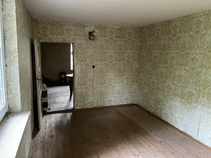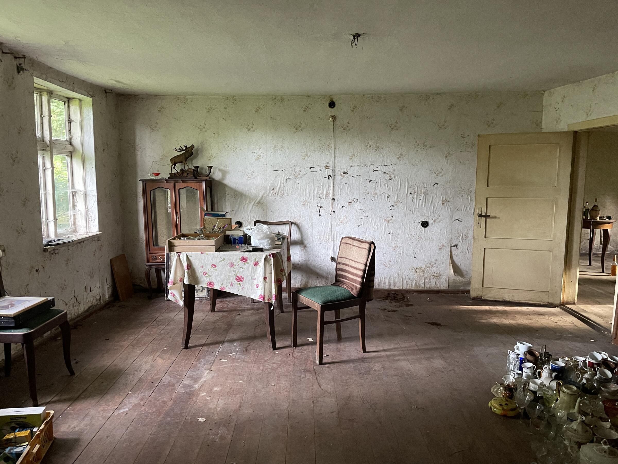 Das Wohnhaus des leerstehenden Bauernhofes ist ca. im Jahr 1790 erbaut worden und hat keinerlei moderne Einrichtung. Die einzelnen Wohnräume sind nicht renoviert und karg. Das Haus hat einen Wasseranschluss und biete auch Hausstrom. Es gibt jedoch kein Badezimmer oder ähnliches. In der Küche steht nur ein alter Ofen. Das ca. 4.000 m² große Grundstück ist wild bewachsen. Die neben dem Haus befindliche Scheune hat zwei Stallungen, wovon eine wegen möglicher Einsturzgefahr nicht betreten werden darf. Die andere Scheune hat ein großes Loch im Dach und ist somit nur mit Vorsicht zu betreten.