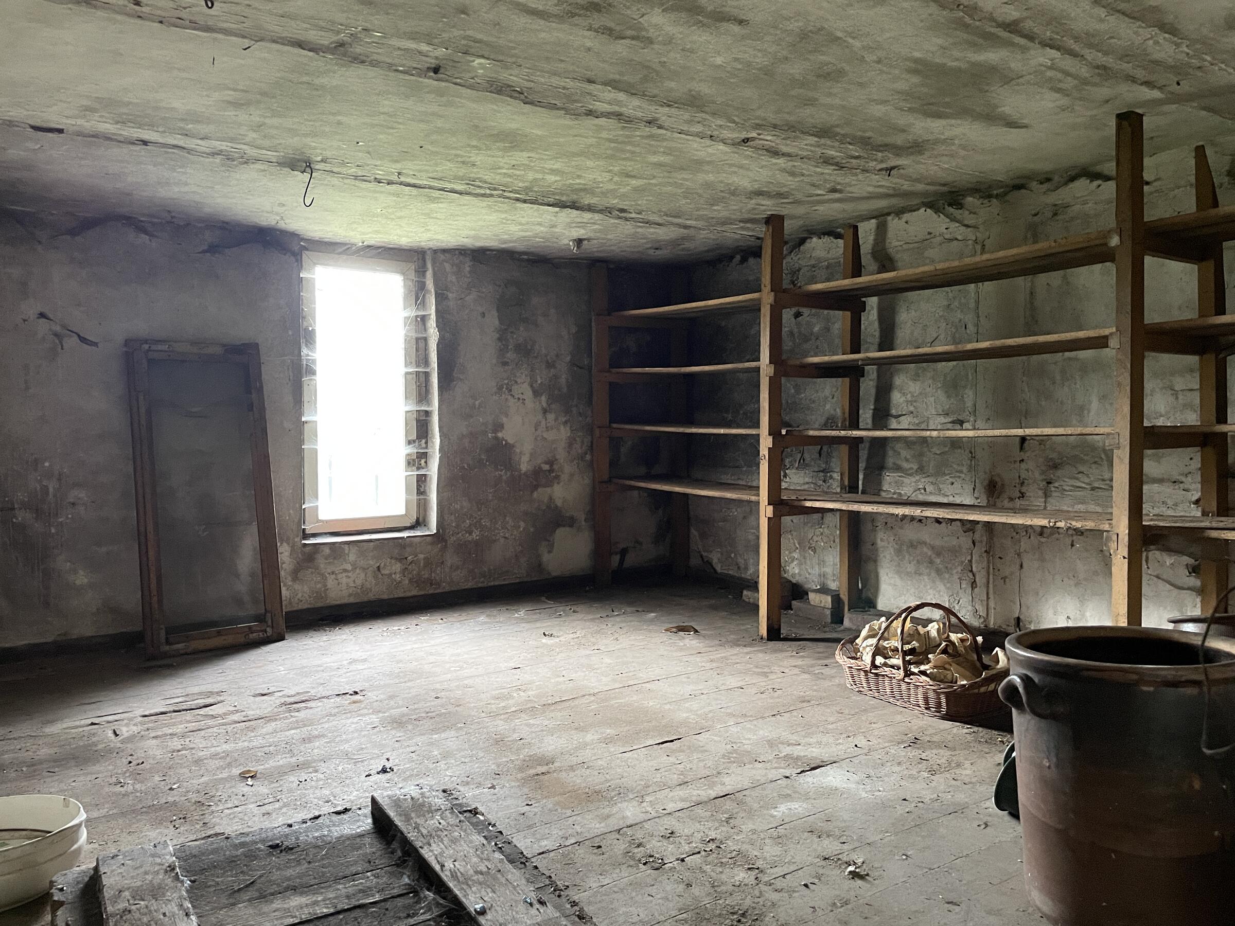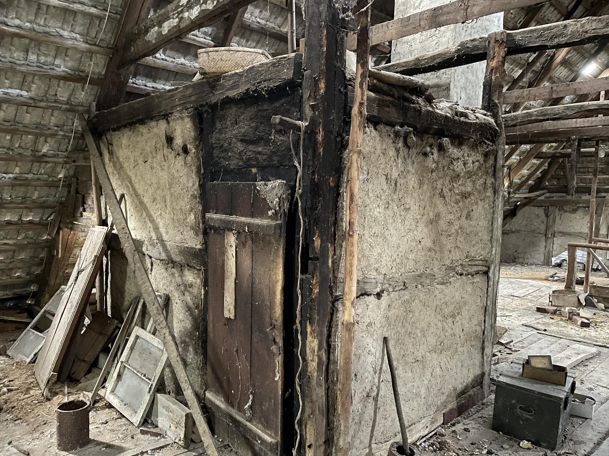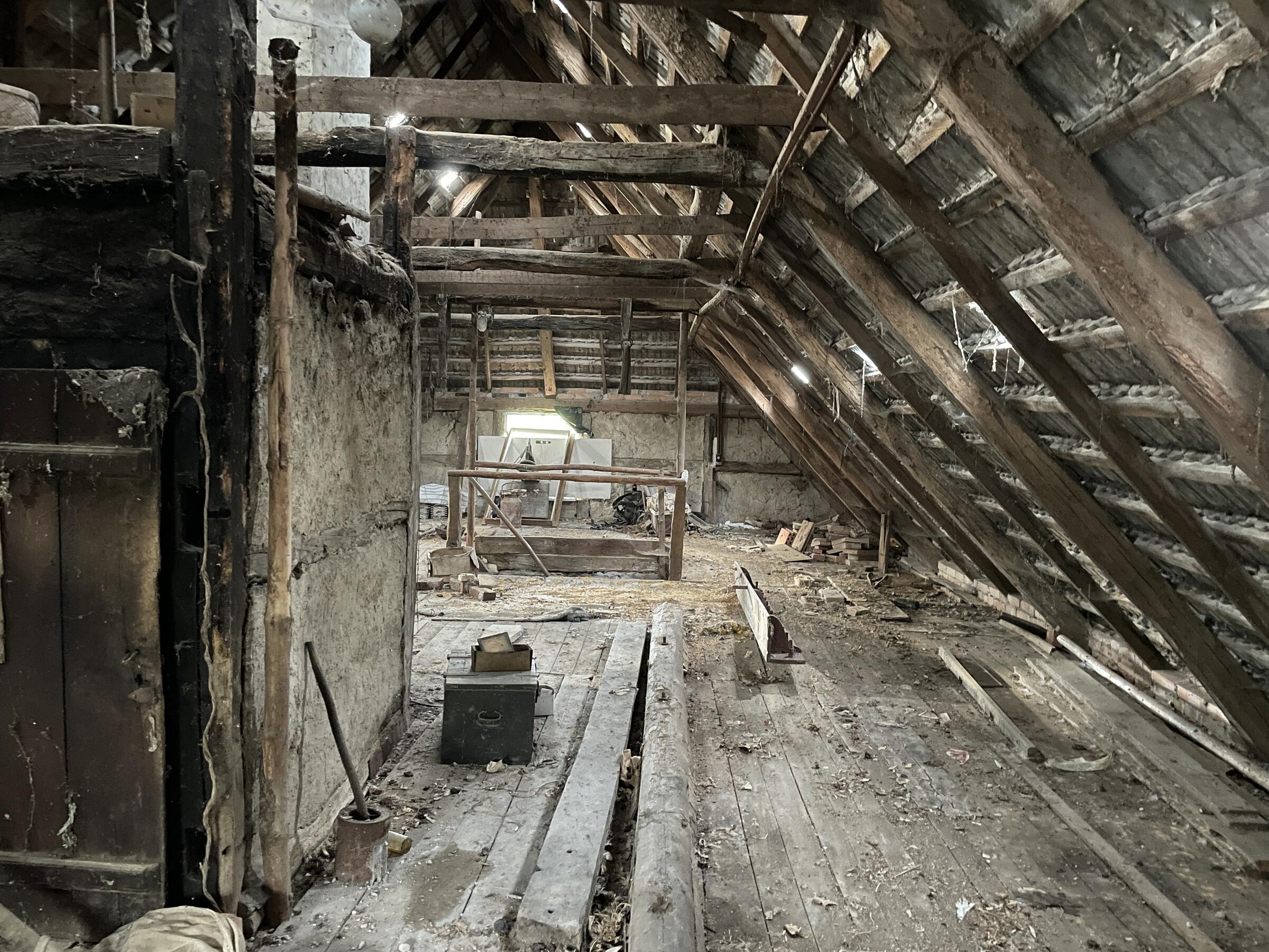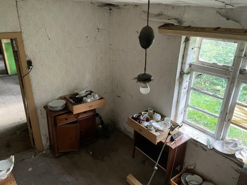 Das Wohnhaus des leerstehenden Bauernhofes ist ca. im Jahr 1790 erbaut worden und hat keinerlei moderne Einrichtung. Die einzelnen Wohnräume sind nicht renoviert und karg. Das Haus hat einen Wasseranschluss und biete auch Hausstrom. Es gibt jedoch kein Badezimmer oder ähnliches. In der Küche steht nur ein alter Ofen. Das ca. 4.000 m² große Grundstück ist wild bewachsen. Die neben dem Haus befindliche Scheune hat zwei Stallungen, wovon eine wegen möglicher Einsturzgefahr nicht betreten werden darf. Die andere Scheune hat ein großes Loch im Dach und ist somit nur mit Vorsicht zu betreten.