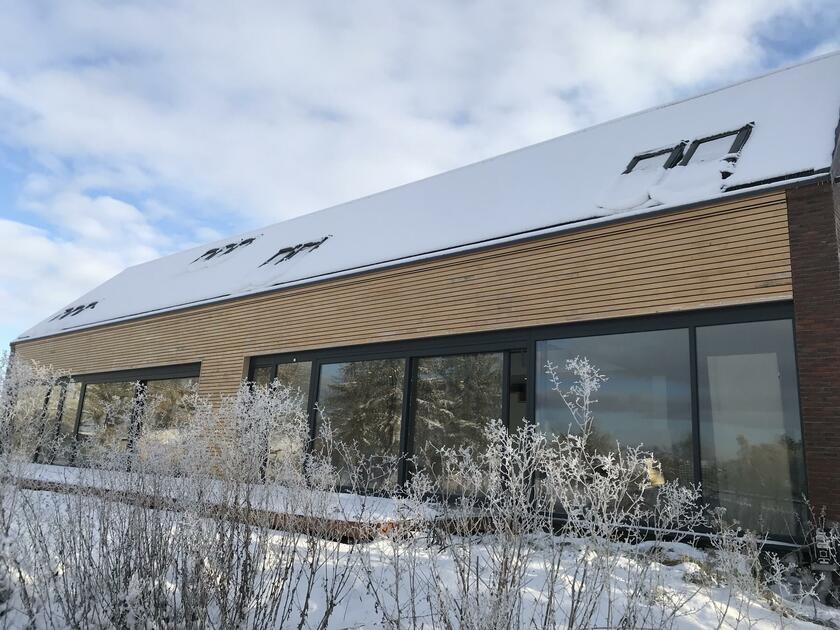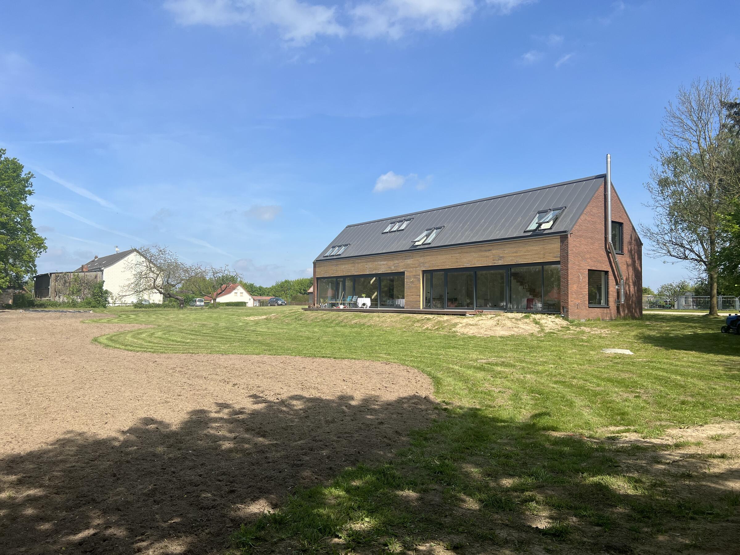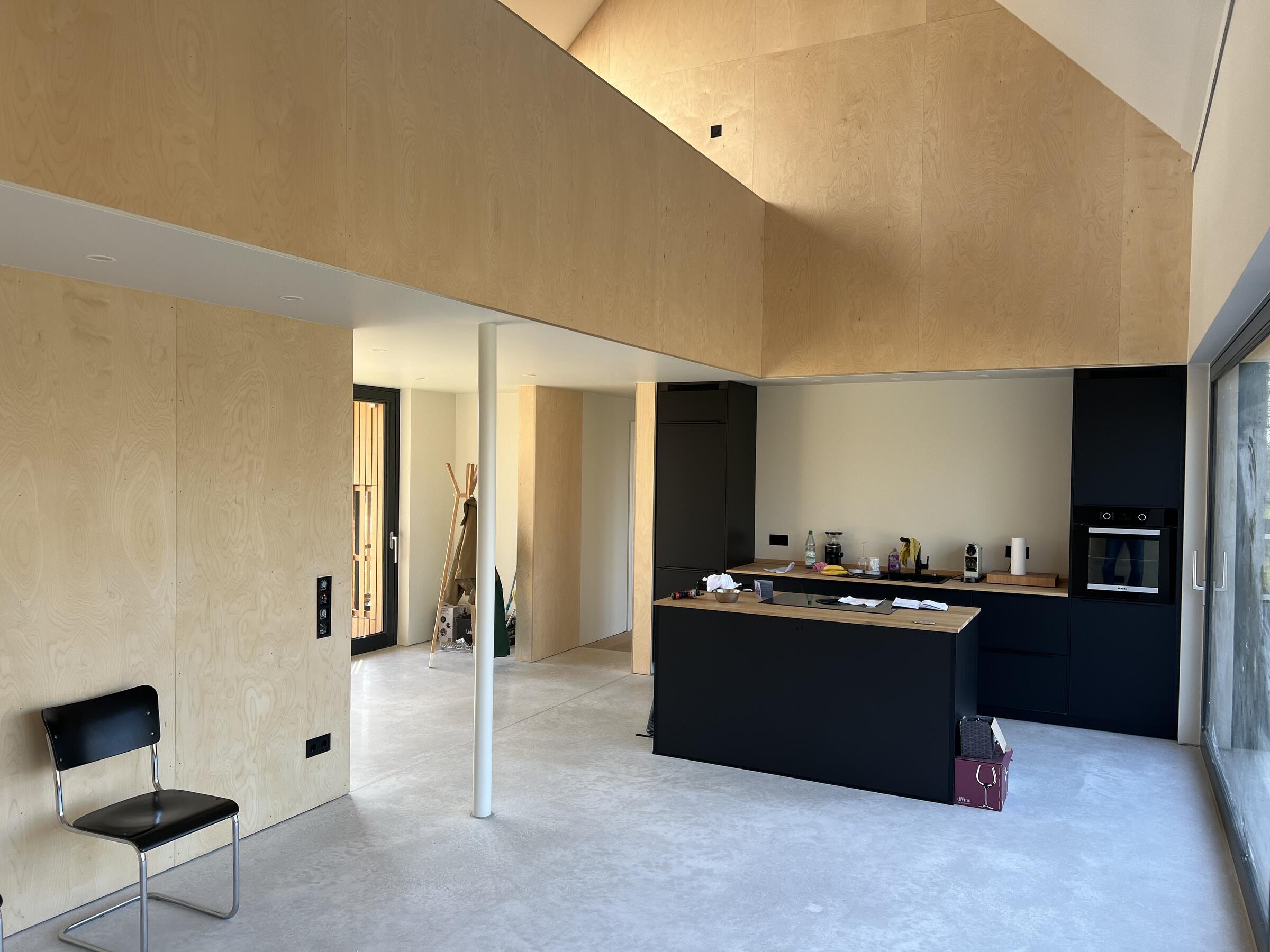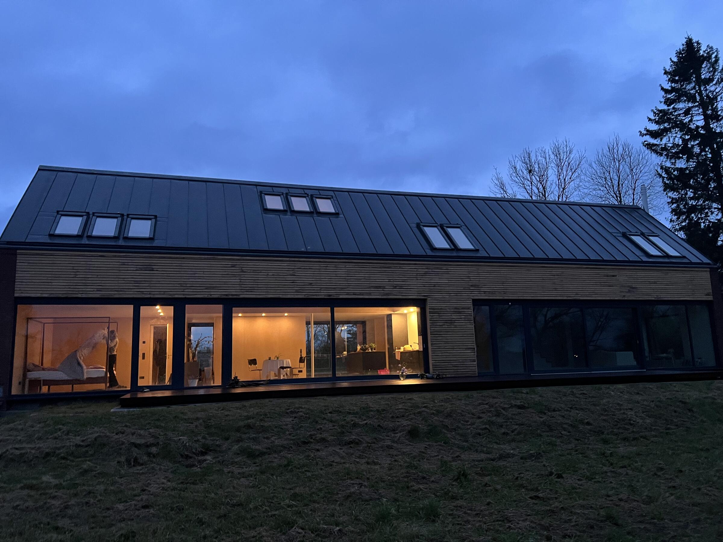 Das neu gebaute Ferienhaus befindet sich in der Mecklenburgischen Schweiz, in einer ruhigen und ländlichen Umgebung zwischen Güstrow und Rostock, Laage, Gnoien, Tessin. Die offene Bauweise des Langhauses bietet große, zugängliche Räume und Bereiche. Die Räume sind minimalistisch und funktional eingerichtet und flexibel umzugestalten. Es wurde viel Birkenholz verarbeitet. Auf den Böden ist hochwertiges Parkett verlegt. Die bodentiefen Fensterfronten ermöglichen viel Tageslicht in den Wohnräumen. Die Fenster verfügen über keine Verdunkelungsmöglichkeiten. Im Außenbereich steht eine große Wiesenfläche zur Verfügung. Pkw-Stellplätze gibt es auf dem Grundstück. Das Grundstück befindet sich an einer kaum befahrenen Sackgasse.