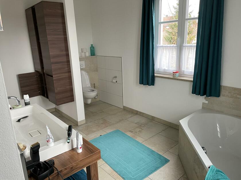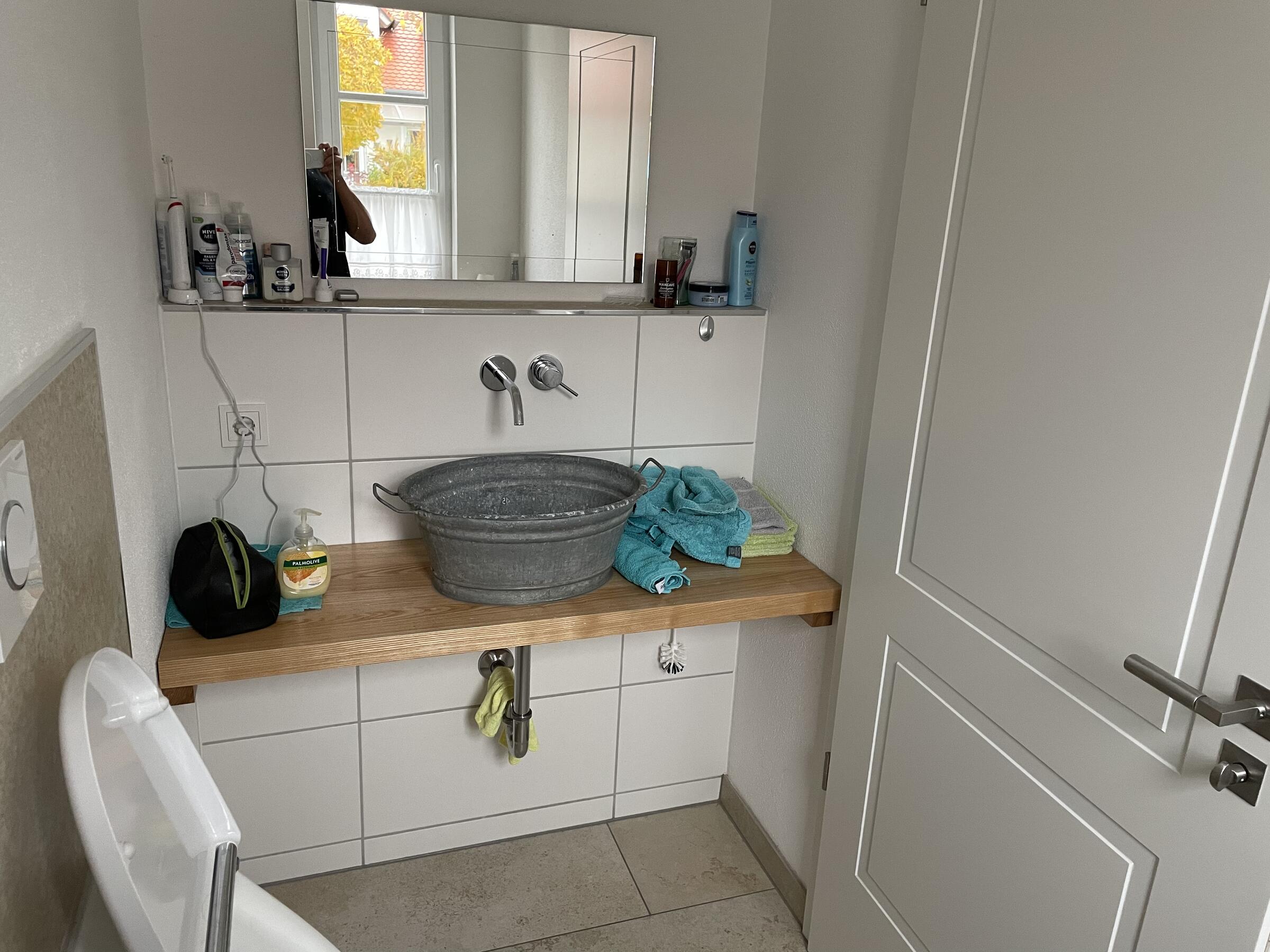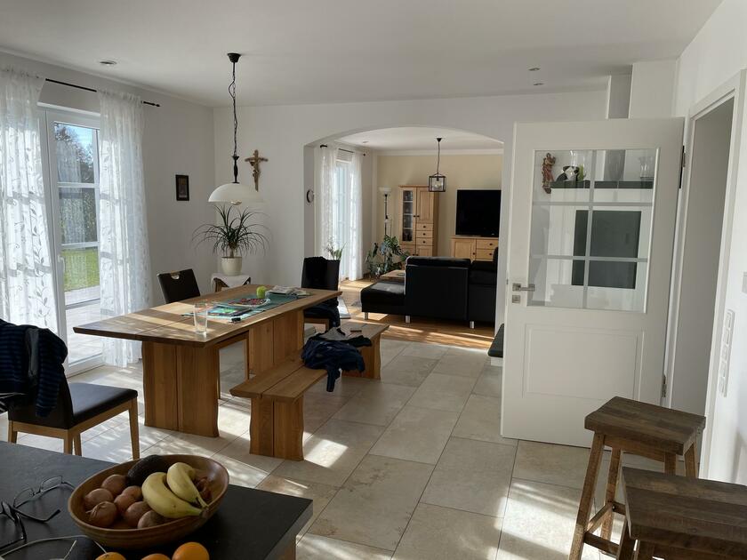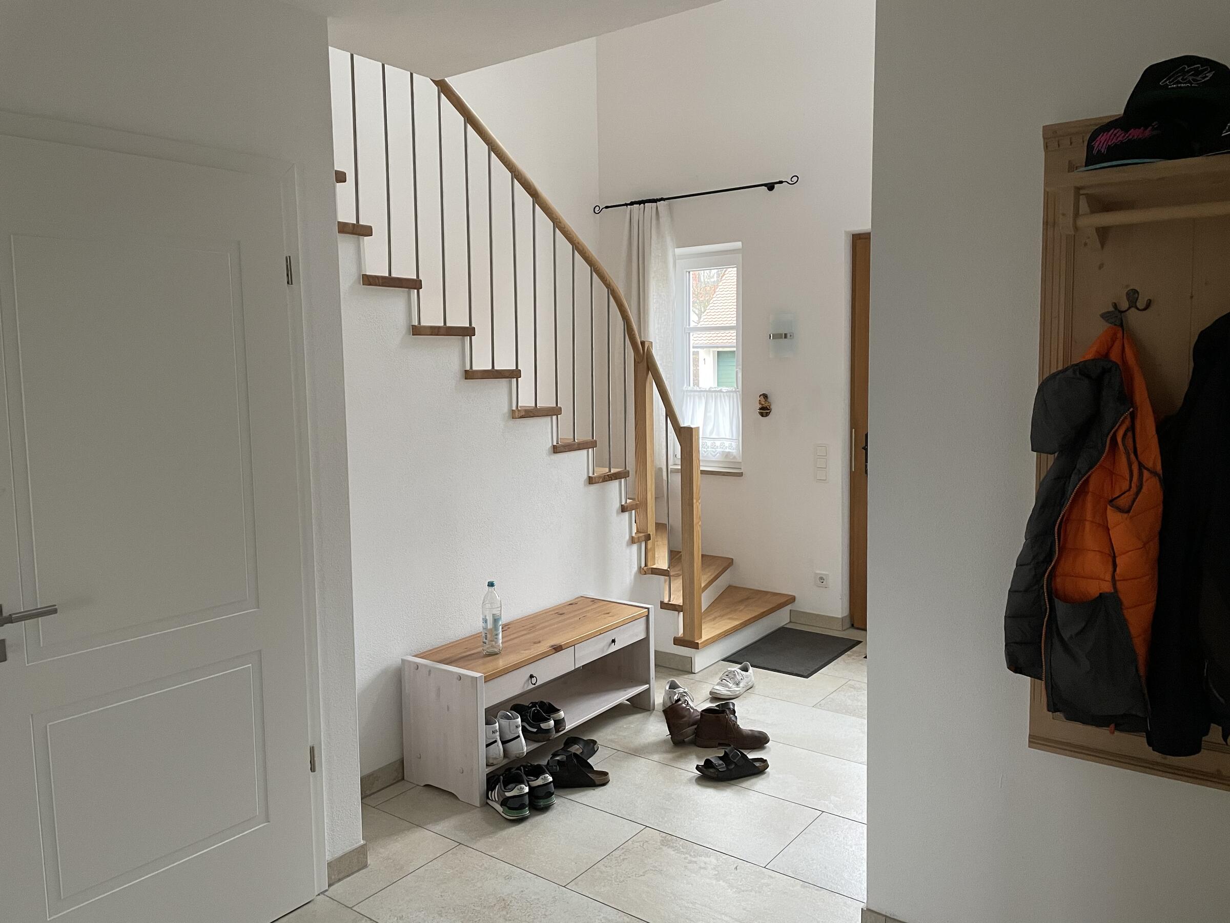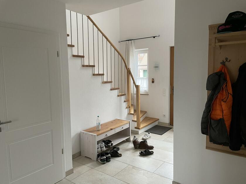Mein Haus wurde 2016 erbaut und befindet sich auf einem ca. 1000 m² großen Grundstück und verfügt über eine 54 m² große Südterasse. Es ist verkehrsgünstig an der A8 gelegen und hat einen nahegelegenen S-Bahnanschluss. Das Haus liegt verkehrsberuhigt in einer ruhigen Nebenstraße, wo sich auch viele Park- und Wendemöglichkeiten bieten. Der Hobbyraum im Keller ist fast leer.