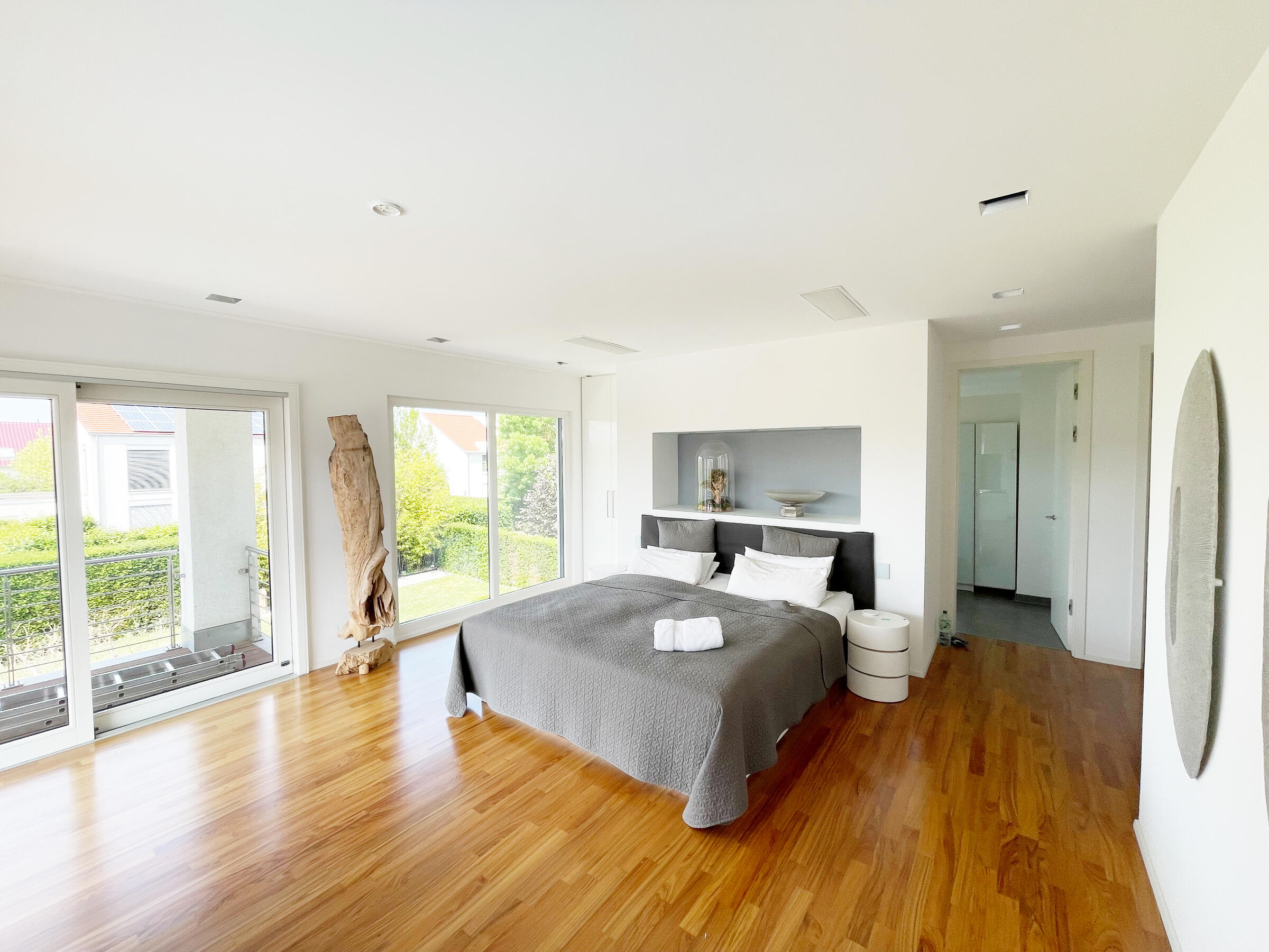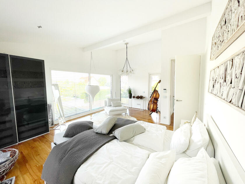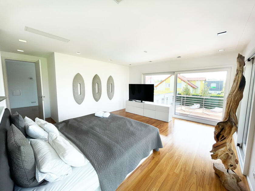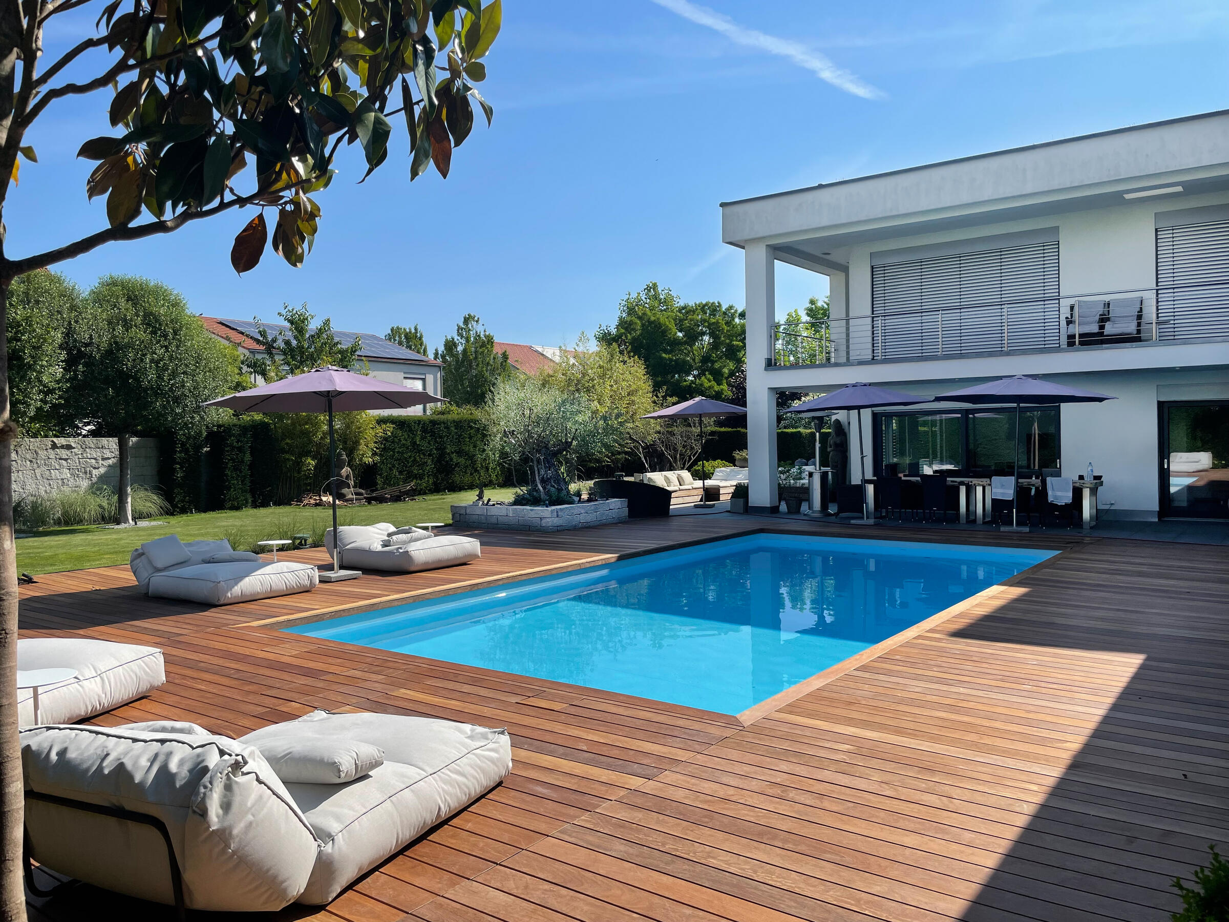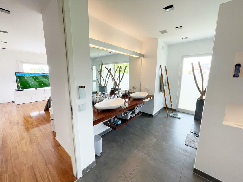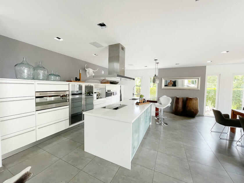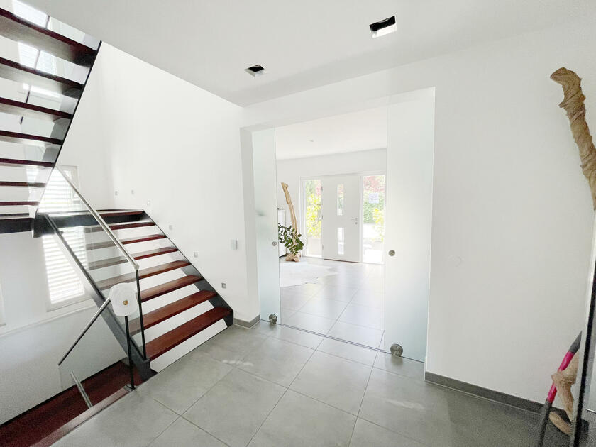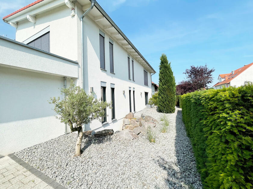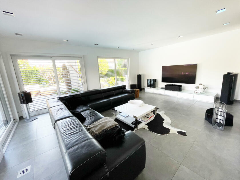 Die helle, moderne und im Bauhausstil gebaute Villa befindet sich auf einem 1.300 m² großem Grundstück in der Metropolregion Rhein-Neckar. Die Villa bietet 540 m² Wohnfläche und besticht durch luxuriösen Wohnkomfort und offen gestaltete und lichtdurchflutete Räume. Eine moderne Küche, ein Fitnessstudio, mehrere Schlafzimmer, Badezimmer und zwei Terrassen gehören ebenso zur Ausstattung der Villa, wie auch ein eigenes Kino. Der 10 m x 5 m große illuminierte Außenpool ist selbstverständlich beheizt und rundet den gepflegten und sichtgeschützten Garten des Grundstückes ab. Darüber hinaus stehen auch Garagen für Produktionen zur Verfügung.
