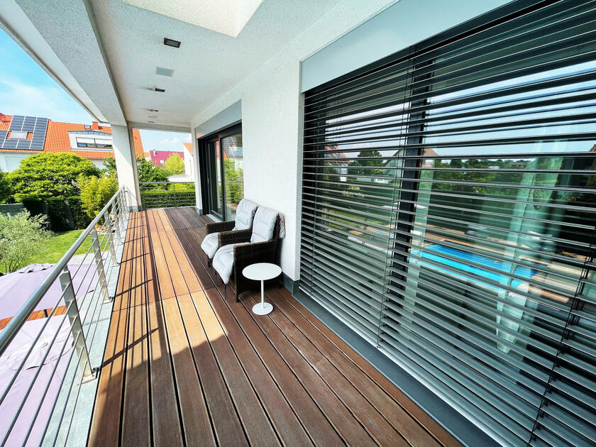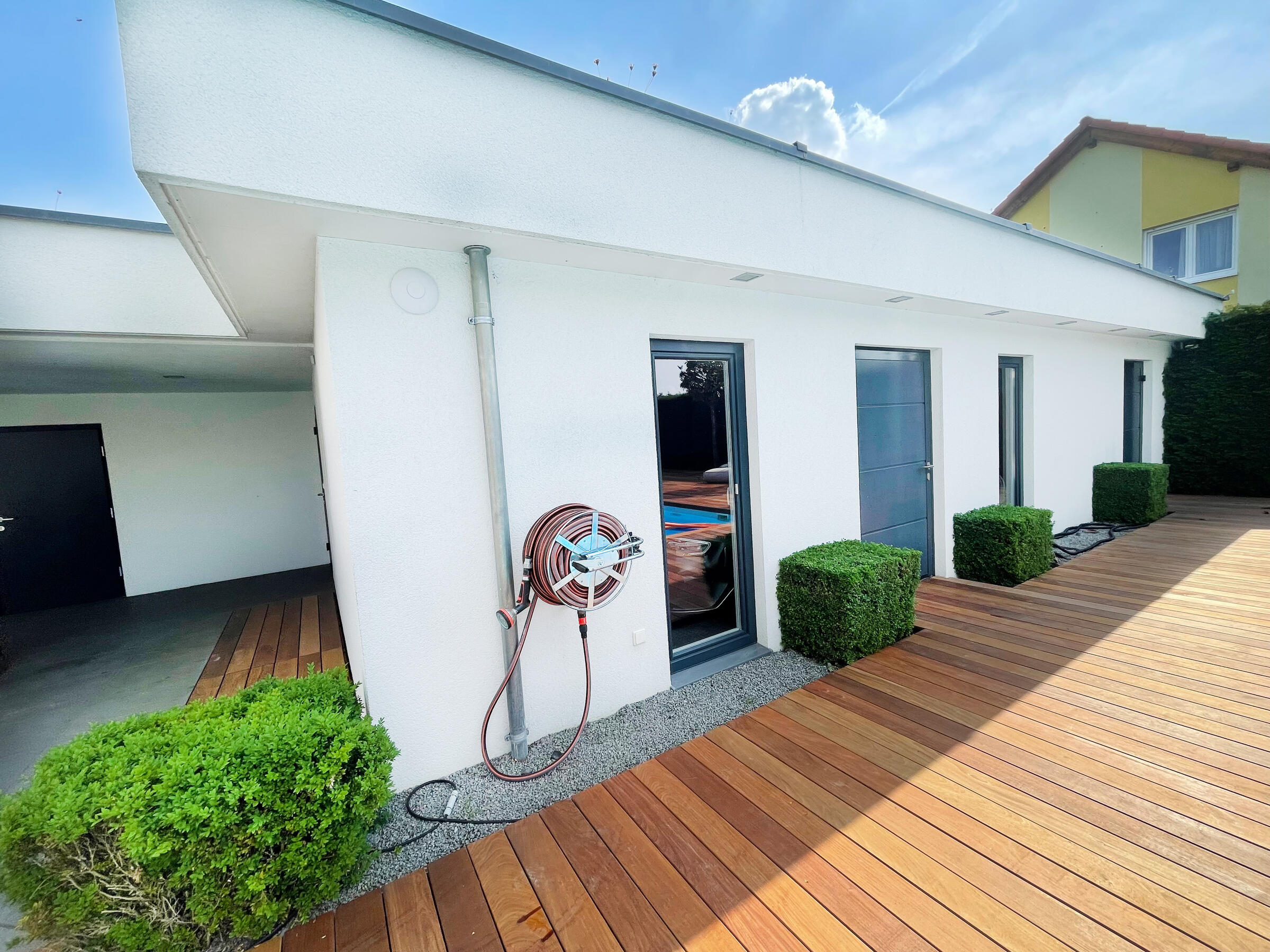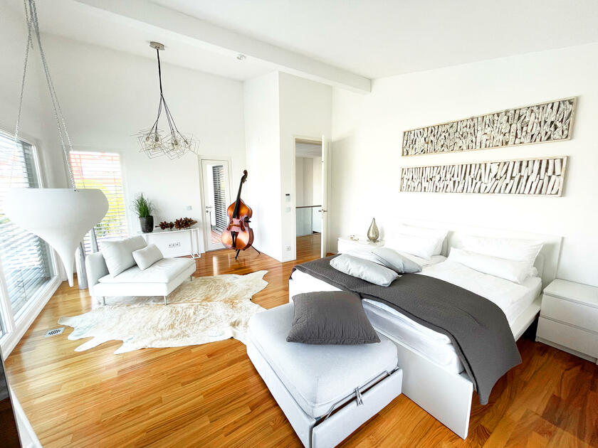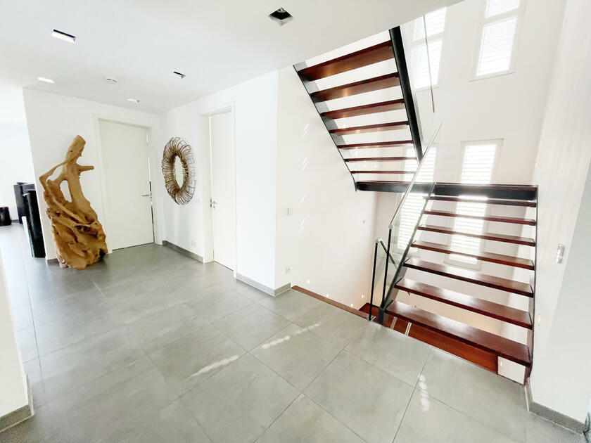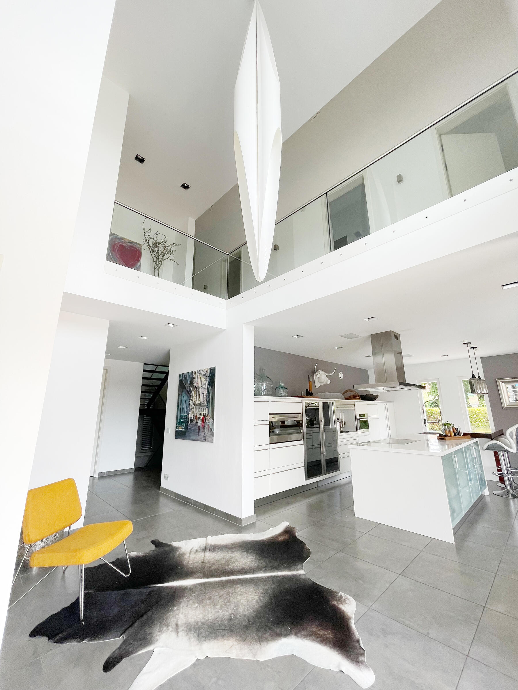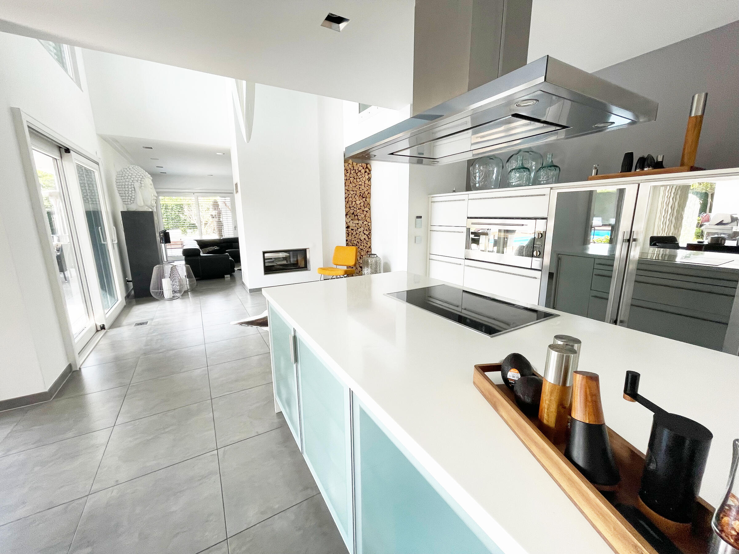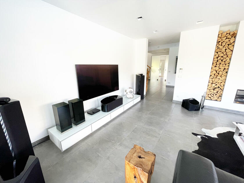 Die helle, moderne und im Bauhausstil gebaute Villa befindet sich auf einem 1.300 m² großem Grundstück in der Metropolregion Rhein-Neckar. Die Villa bietet 540 m² Wohnfläche und besticht durch luxuriösen Wohnkomfort und offen gestaltete und lichtdurchflutete Räume. Eine moderne Küche, ein Fitnessstudio, mehrere Schlafzimmer, Badezimmer und zwei Terrassen gehören ebenso zur Ausstattung der Villa, wie auch ein eigenes Kino. Der 10 m x 5 m große illuminierte Außenpool ist selbstverständlich beheizt und rundet den gepflegten und sichtgeschützten Garten des Grundstückes ab. Darüber hinaus stehen auch Garagen für Produktionen zur Verfügung.