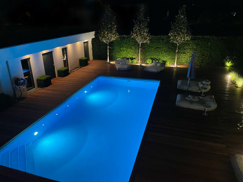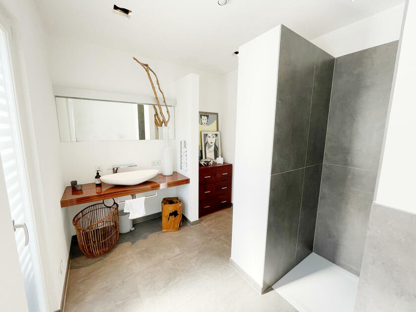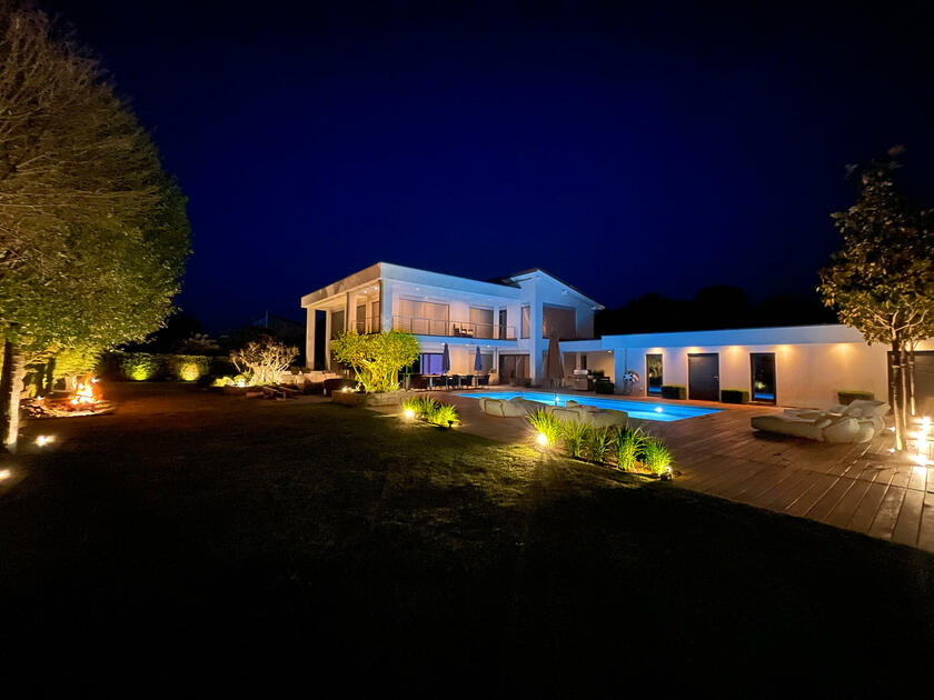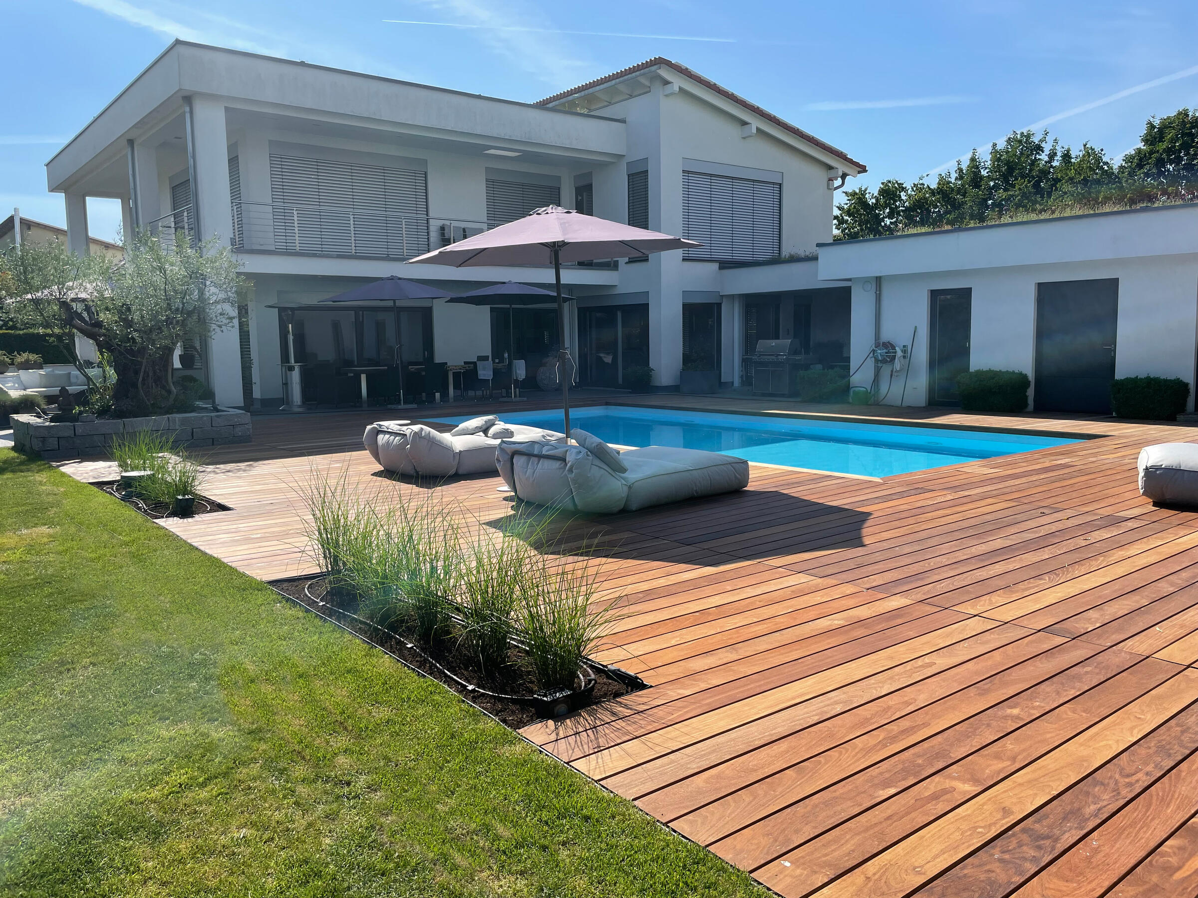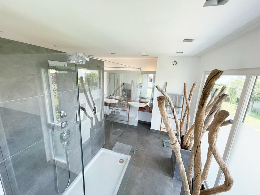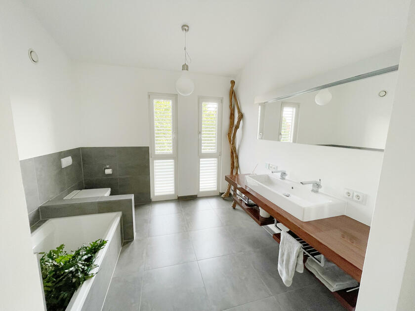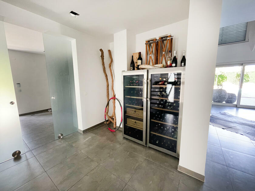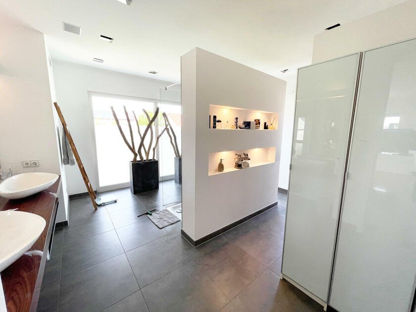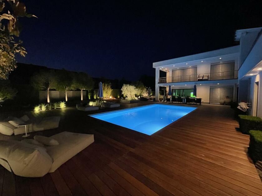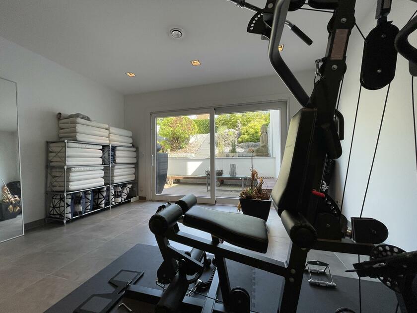 Die helle, moderne und im Bauhausstil gebaute Villa befindet sich auf einem 1.300 m² großem Grundstück in der Metropolregion Rhein-Neckar. Die Villa bietet 540 m² Wohnfläche und besticht durch luxuriösen Wohnkomfort und offen gestaltete und lichtdurchflutete Räume. Eine moderne Küche, ein Fitnessstudio, mehrere Schlafzimmer, Badezimmer und zwei Terrassen gehören ebenso zur Ausstattung der Villa, wie auch ein eigenes Kino. Der 10 m x 5 m große illuminierte Außenpool ist selbstverständlich beheizt und rundet den gepflegten und sichtgeschützten Garten des Grundstückes ab. Darüber hinaus stehen auch Garagen für Produktionen zur Verfügung.