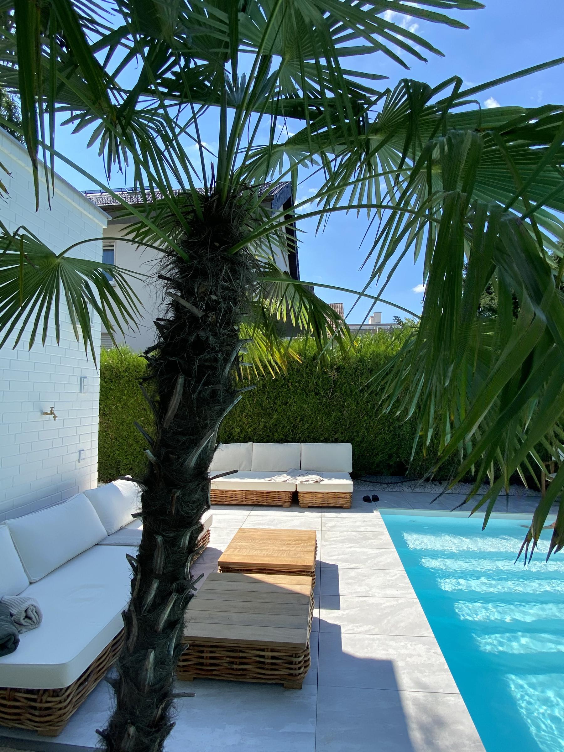 Unser Haus befindet sich in dem wunderschönen Weinheim. Die oberen zwei Geschosse sowie der Garten und beide Außenterrassen können für Photo Shootings und Dreharbeiten genutzt werden. Das Haus wurde 2019 kernsaniert und mit modernen, hochwertigen Möbeln eingerichtet. Unser Garten hat einen Outdoor Pool und versprüht dank unserer Palmen und Olivenbäume pures Urlaubsgefühl. Neben dem Garten haben wir einen kleinen „Frühstücksbalkon“ auf dem wir die Morgensonne genießen können und eine große Terrasse im 1. OG, auf der bis zu 10 Personen Platz finden können. Die Terrasse wurde ebenfalls komplett mit Pflanzen und verschiedenen Palmen Arten umpflanzt, was eine tolle Privatsphäre schafft. Der „Elternbereich“ ist ein großer Raum auf verschiedenen Ebenen. Dort befindet sich ein großzügiges Bad, mit freistehender Badewanne und Blick auf die Burgen, ein Ankleidezimmer mit Zugang zu einem Balkon und Schlafbereich. Der Ankleidebereich wurde ebenfalls mit Bambus umpflanzt, sodass man auch hier Privatsphäre hat und einen tollen Blick aus dem Badezimmer. Im Erdgeschoss der Villa befindet sich eine Arztpraxis, die nicht zur Vermietung steht.