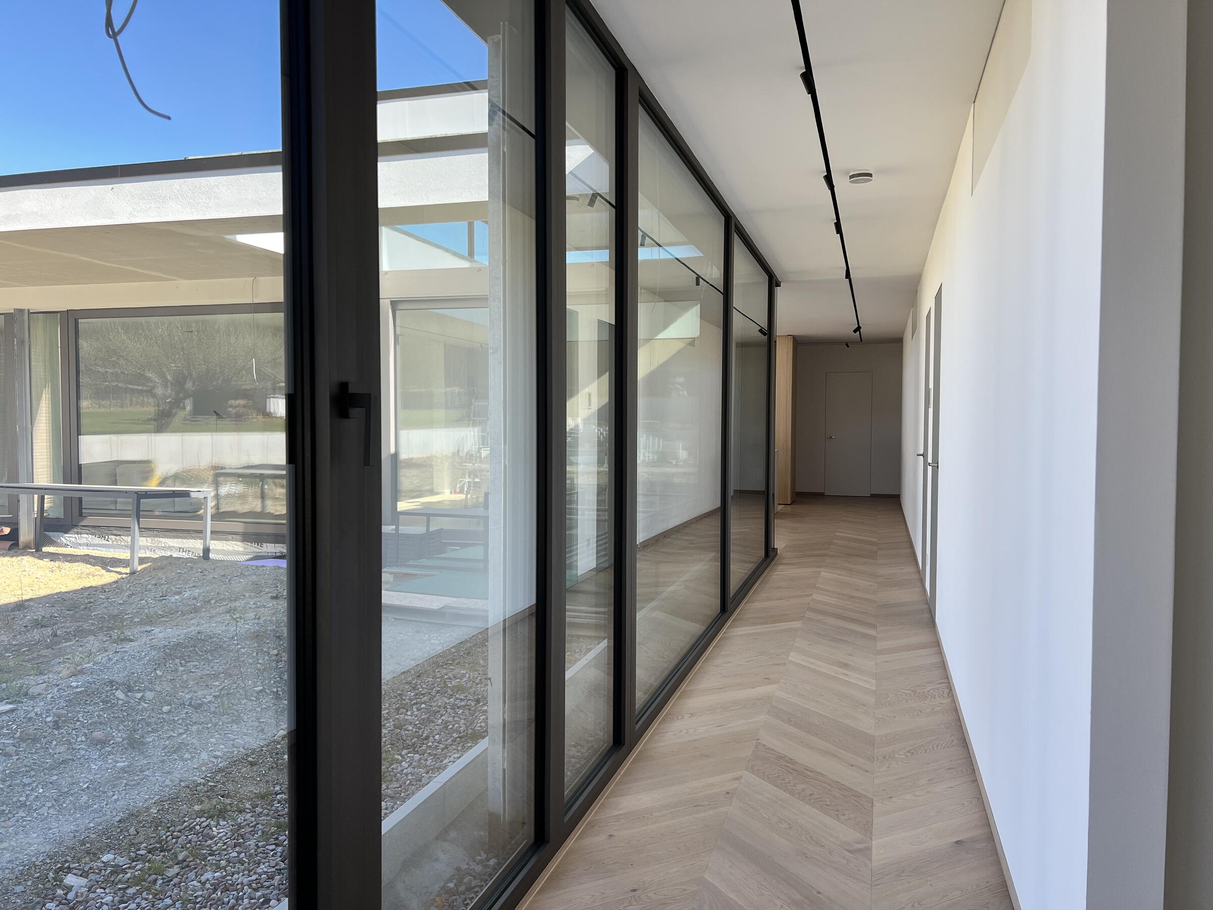 Der außergewöhnliche Neubaubungalow befindet sich inmitten einer Waldlandschaft am Rande des Deisters. Der nach Süden ausgerichtete Bungalow vereint moderne Architektur mit nachhaltiger Bauweise. Die Räume sind offen gestaltet und modern eingerichtet. Die großen, bodentiefen Fensterfronten und die Oberlichter im Wohn- und Essbereich lassen viel Tageslicht in die Räume und können mit Hilfe von Jalousien und Rollos verdunkelt werden. Auf den Böden der Wohnräume ist hochwertiges Parkett verlegt. Parkplätze und Stellflächen befinden sich vor unserem Grundstück. Das Haus befindet sich in einer ruhigen Wohngegend.