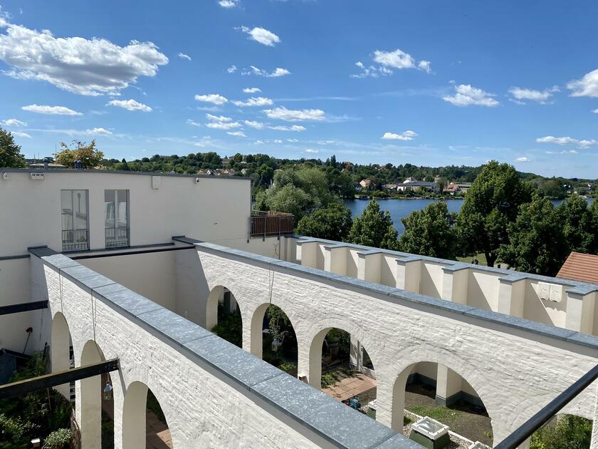 Die Wohnung befindet sich in der ehemaligen Saftfabrik in Werder, direkt auf der Insel am Markt mit Blick auf die Havel. Die helle, 144 m² große und lichtdurchflutete Wohnung ist im Industrial/Boho Stil eingerichtet. Aufgrund der bodentiefen Fenster gelangt viel Sonnenlicht in die Räume. Der Fußboden besteht aus Eichenparkett und an den Wänden ist Mauerstein-Imitat aus Styropor angebracht. Zur Wohnung gehört ebenfalls eine 20 m² große Dachterrasse, die einen Blick auf atemberaubend schöne Sonnenuntergänge bietet. Nutzen Sie die einmalig eingerichtete Wohnung für perfekte Settings Ihrer Film- oder Fotoproduktion.