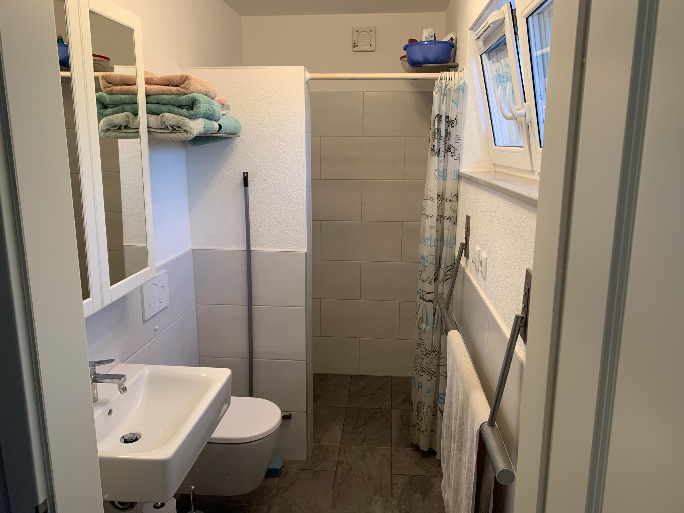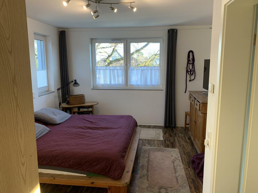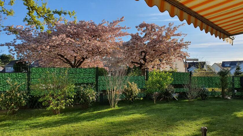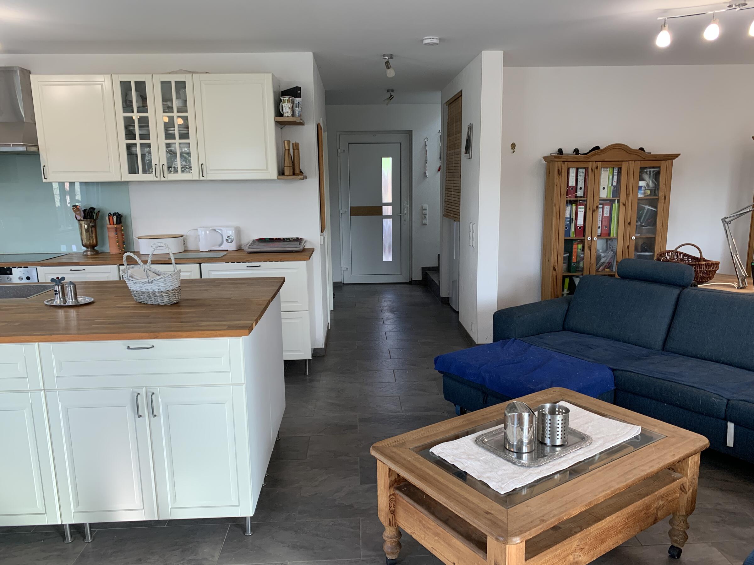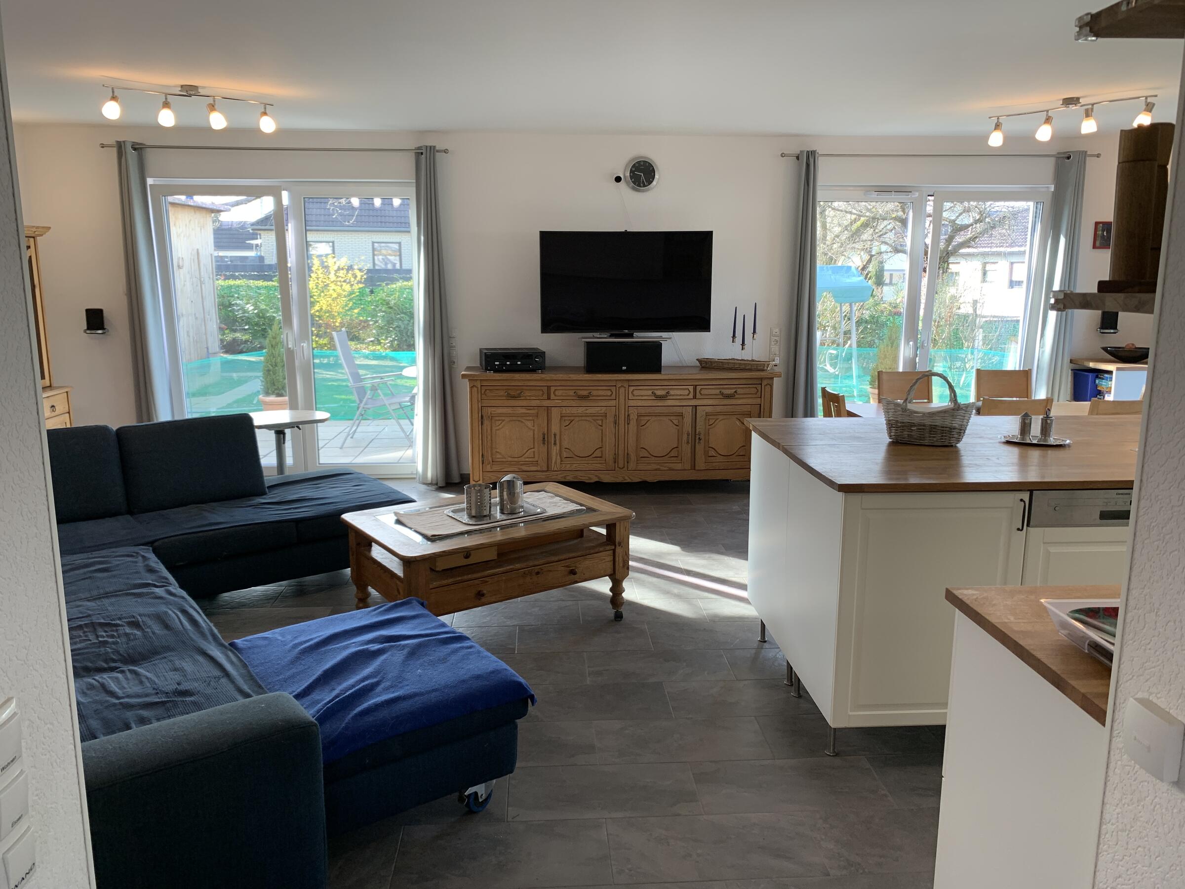 Das Haus befindet sich in einer ruhigen Wohngegend an einer wenig befahrenen Straße. Die Räume sind hell und funktional eingerichtet. Die Wohnräume im Erdgeschoss sind offen gestaltet. Die Küche verfügt über eine große Kochinsel. Die Böden aller Räume sind grau gefliest. Die Fenster können mit Hilfe von elektrischen Außenrollos vollständig verdunkelt werden. Nach Absprache dürfen die Räume umgestaltet werden. Im Außenbereich können zwei Terrassen, die jeweils über Markisen verfügen, und der große Garten genutzt werden. Zwei Pkw-Parkplätze bestehen auf der Auffahrt des Grundstückes. Weitere Parkplätze gibt es auf der vorbeiführenden Spielstraße.