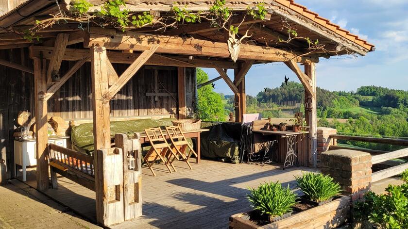 Das unbewohnte Bauernhaus befindet sich im wunderschönen Bayerischen Wald in einer ruhigen und erhöhten Alleinlage. Es wurde während der letzten Jahre liebevoll saniert und mit Antiquitäten bestückt, die für Dreharbeiten beliebig eingesetzt werden können. Das Bauernhaus wird mit einem Holzofen beheizt. Im Erdgeschoss befinden sich eine große urige Bauernstube, die Küche und ein Badezimmer. Im Obergeschoss gibt es zwei historische Schlafzimmer und einen großen und hellen Raum, der beispielsweise für das Team genutzt oder beliebig eingerichtet werden kann. Der Dachboden ist ebenfalls nutzbar. Ebenso eine kleine Werkstatt. Der direkt an das Haus angrenzende 2-stöckige Stadel kann ebenso komplett zur Verfügung gestellt werden. Ein Teil davon ist mit geschichtsträchtigen Gegenständen eingerichtet, der einem kleinen Museum gleicht. Zum Außenbereich gehören eine nach Süden ausgerichtete Terrasse mit Weinlaubdach und rundherum schön angelegte Gärten mit alte Eichenbaumbestände. Eine große Garage ist ebenfalls vorhanden und kann genutzt werden. Park- und Stellflächen stehen auf dem Grundstück zur Verfügung.