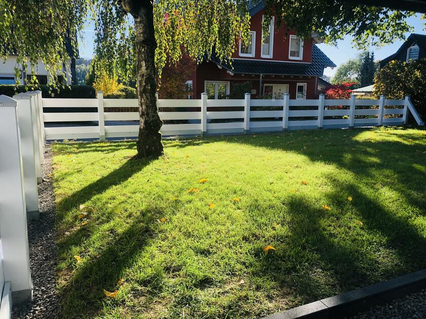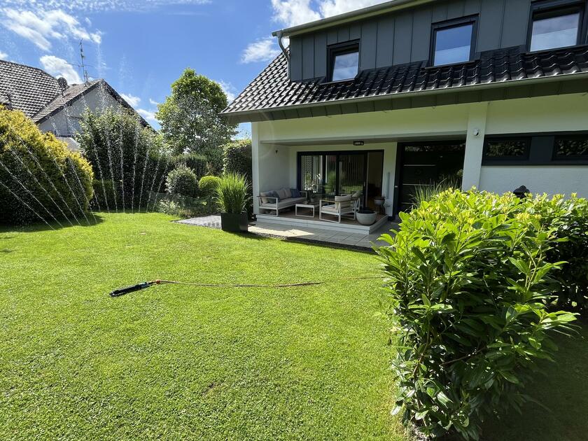 Das Haus steht zentral auf dem ca. 800 m² großem Grundstück, dessen Grenzen durch hohe Sträucher und Bäume geschützt sind, sodass das Haus und der Garten kaum einsehbar sind. Alle Räume im Haus können vollständig verdunkelt werden. Parkmöglichkeiten sind sowohl auf dem Grundstück als auch in der Siedlung vorhanden. Das Equipment kann bequem in der Garage gelagert werden, die direkten Zugang zum Wohnobjekt bietet.