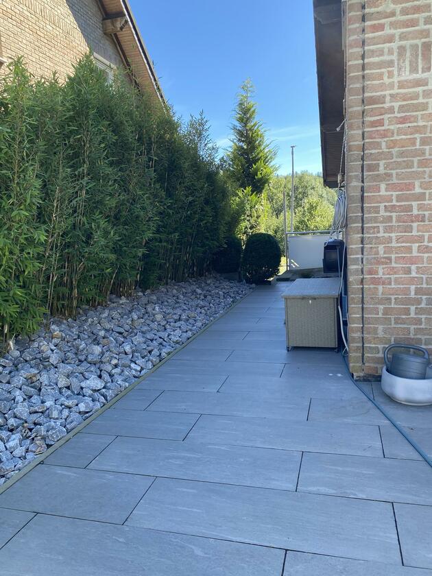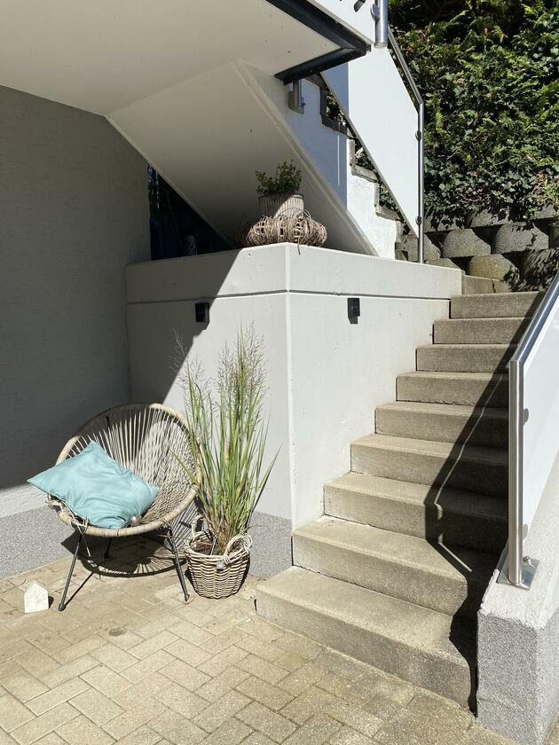 Mein Haus befindet sich mitten im bergischen Land zwischen Wiesen und Wäldern aber direkt an der Bundesstraße. Es teilt sich in 2 Etagen und einem Dachgeschoss auf. In der 1. Etage befindet sich die offene Wohnküche mit Kamin und moderner Einrichtung und vielen DIY Projekten. Angrenzend das Schlafzimmer sowie das kleine Bad mit Dusche und der Eingangsbereich. Durch das Treppenhaus gelangt man in die 2. Etage, wo sich eine Diele mit offener Treppe zum ausgebauten Dachgeschoss befindet. Hier befindet sich auch das große Bad mit freistehender Wanne. Die Terrasse wurde erneuert und im modernen Stil gestaltet, sie ist teilweise überdacht. Daran angrenzend befindet sich eine ca. 1.000 m² große Freifläche.
