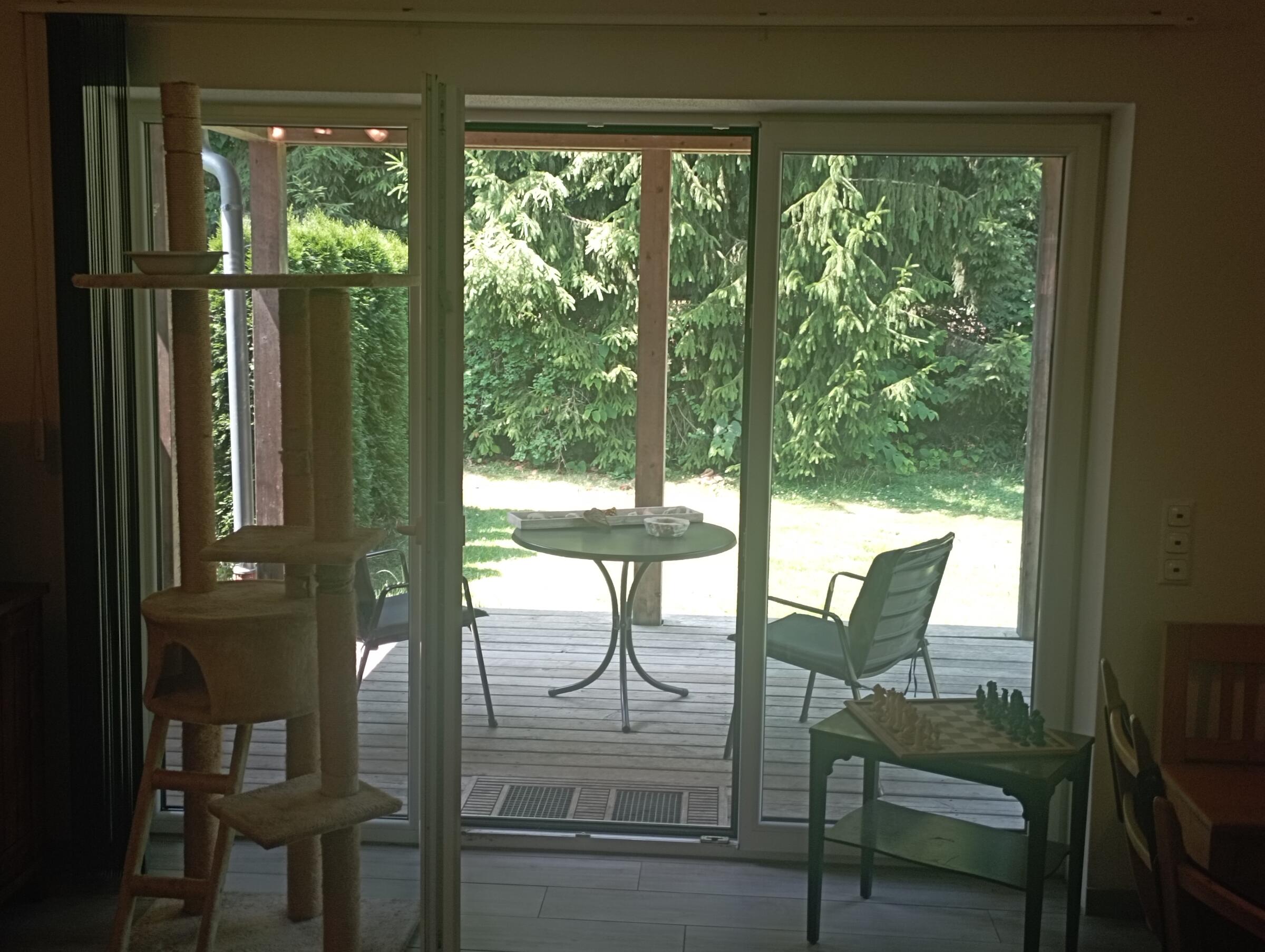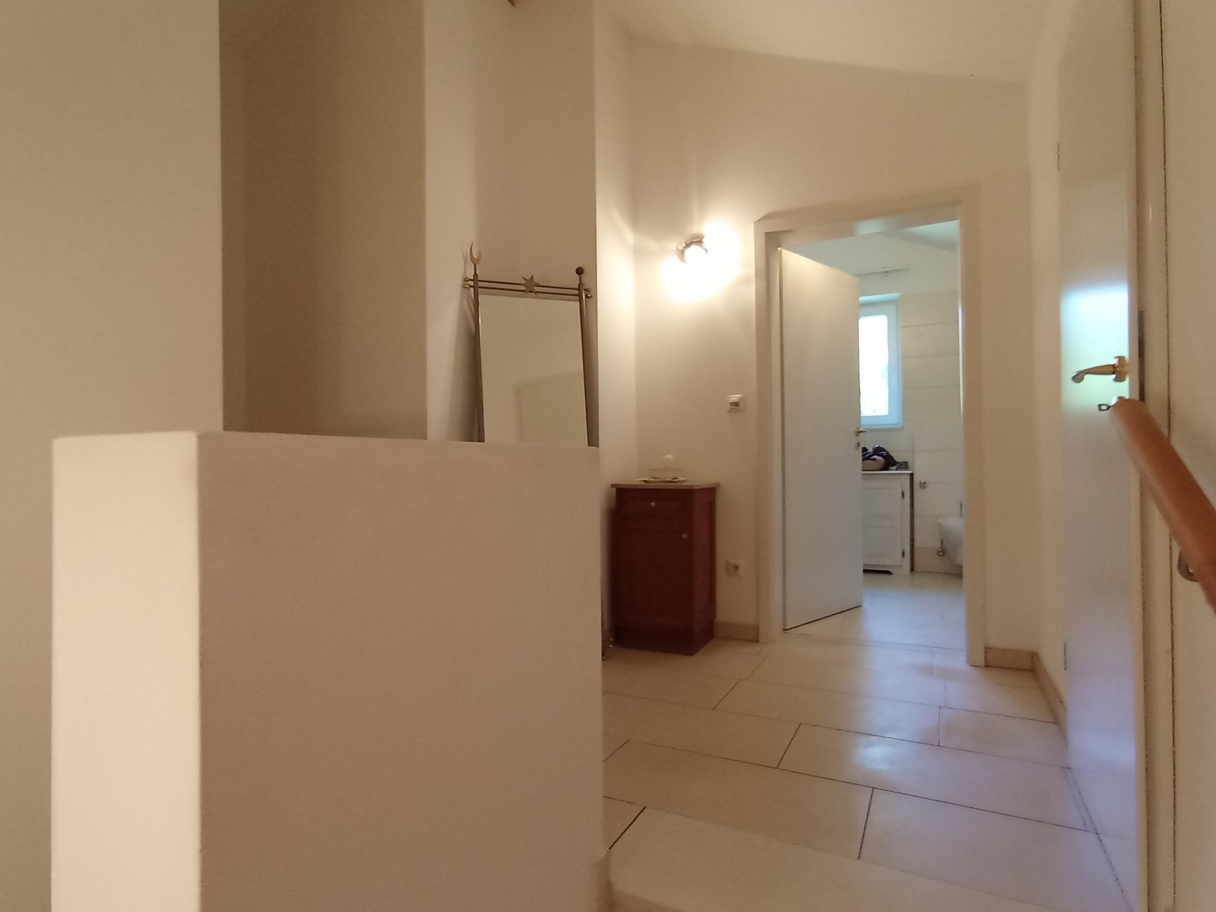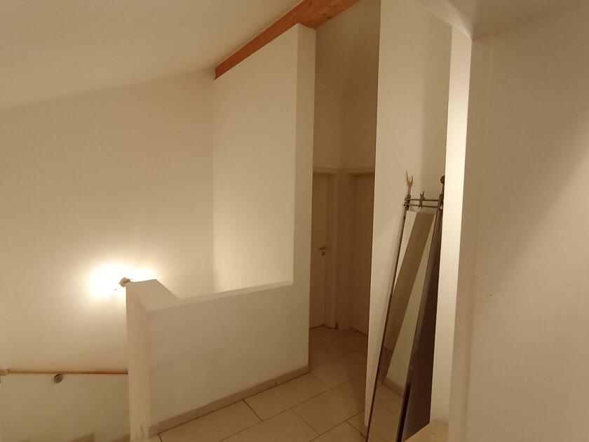 Die Doppelhaushälfte befindet sich in Waldnähe, angrenzend an Felder und Wiesen. Die Lichtverhältnisse in den Räumen sind eher dunkel. Es gibt im Haus eine Einbauküche, moderne Fliesenböden, einen Schwedenofen und weiße Wände. Die Einrichtung bewegt sich zwischen modern und rustikal. Deckenhöhen der Räume sind von ca. 1,65 m bis ca. 3,85 m. Das erste Obergeschoss liegt unter dem Dachstuhl. Die Treppe zum Obergeschoss ist gewendelt und aus Kunstmarmor. Räume für Teamaufenthalt, Maske und Garderobe nach Absprache. Private Parkplätze stehen zu Verfügung. Das Haus befindet sich ca. 3 km von der A94 entfernt.