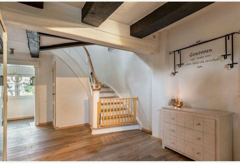 Das großzügige idyllische Grundstück mit Bachlauf ist bebaut mit einer Fachwerkanlage bestehend aus einem Wohnhaus und einer Fachwerkscheune. Das Landhaus aus dem Jahre 1640 hat ca. 350 m² Wohnfläche und befindet sich in einzigartiger Lage in der Nähe des historischen Dorfes Düssel (Wülfrath). Die letzte umfangreiche Renovierung fand im Jahr 2013 statt, so dass es den heutigen Vorstellungen vom zeitgemäßen Wohnen entspricht und geschmackvoll eingerichtet und dekoriert ist.