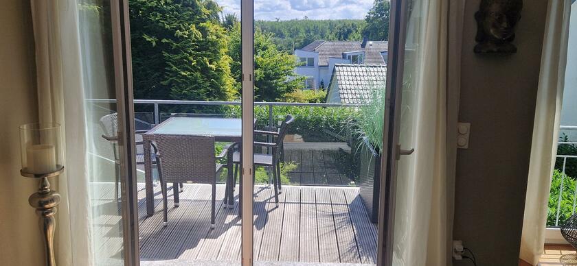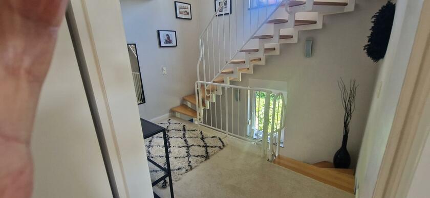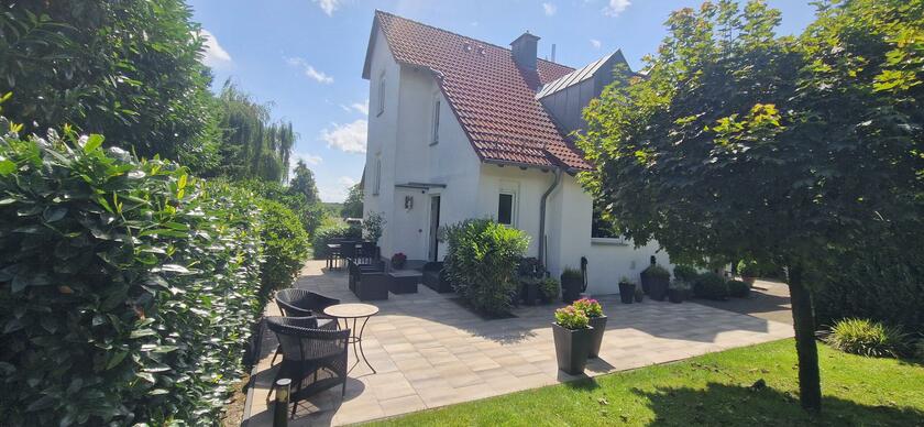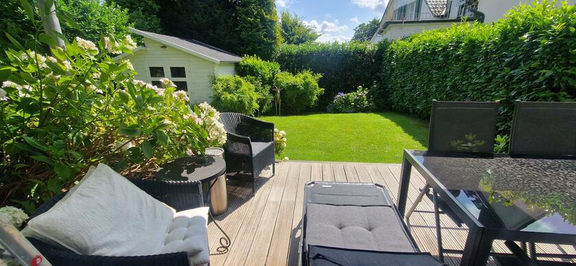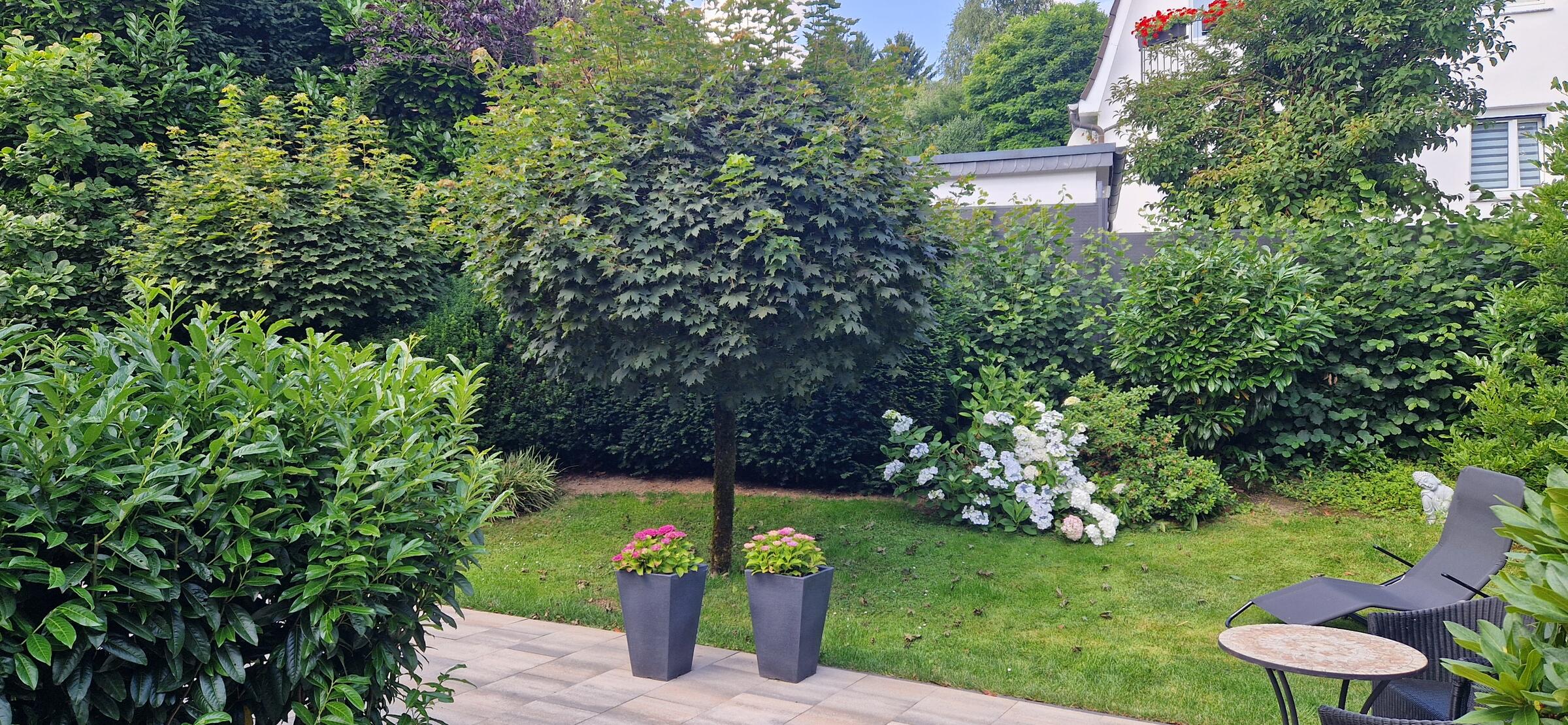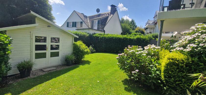 Unsere Doppelhaushälfte befindet sich im Wuppertaler Wohnquartier Lichtenplatz, am Ende eines Privatweges. Die Räume sind zeitgemäß und funktional eingerichtet. Durch die großen und teilweise bodentiefen Fenster fällt Tageslicht in die Räume. Die Fenster der Wohnbereiche sind mit Hilfe von Außenjalousien abdunkelbar. Das Haus ist vollständig von Grünbereichen und Hecken umgeben. Das Grundstück ist von außen weitestgehend uneinsehbar. Die Einfahrt, der zum Haus gehörenden Garage, befindet sich an der vorbeiführenden Anliegerstraße auf der es ebenfalls Pkw-Parkplätze gibt.