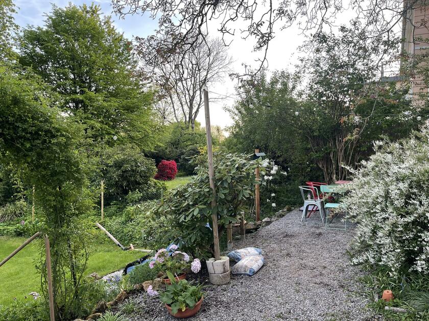 Unser denkmalgeschütztes Haus befindet sich in der Nähe des Nordpark in Wuppertal. Wir haben das Haus im Jahr 2024 vollständig saniert und renoviert. Im Erdgeschoss bietet unser Haus eine offen gestaltete Wohnküche mit einem großen Essbereich. Das gemütliche Wohnzimmer ist hier durch eine Schiebetür vom Essbereich getrennt. Die Räume sind hell und freundlich gestaltet. Es fällt viel Sonnenlicht in die Räume. Die Fenster können teilweise mit Vorhängen verdunkelt werden. Auf den Böden sind hochwertige Dielen und Laminat verlegt. Im Außenbereich steht unser großer und gepflegter Garten zur Verfügung. Parkplätze gibt es direkt vor dem Haus.