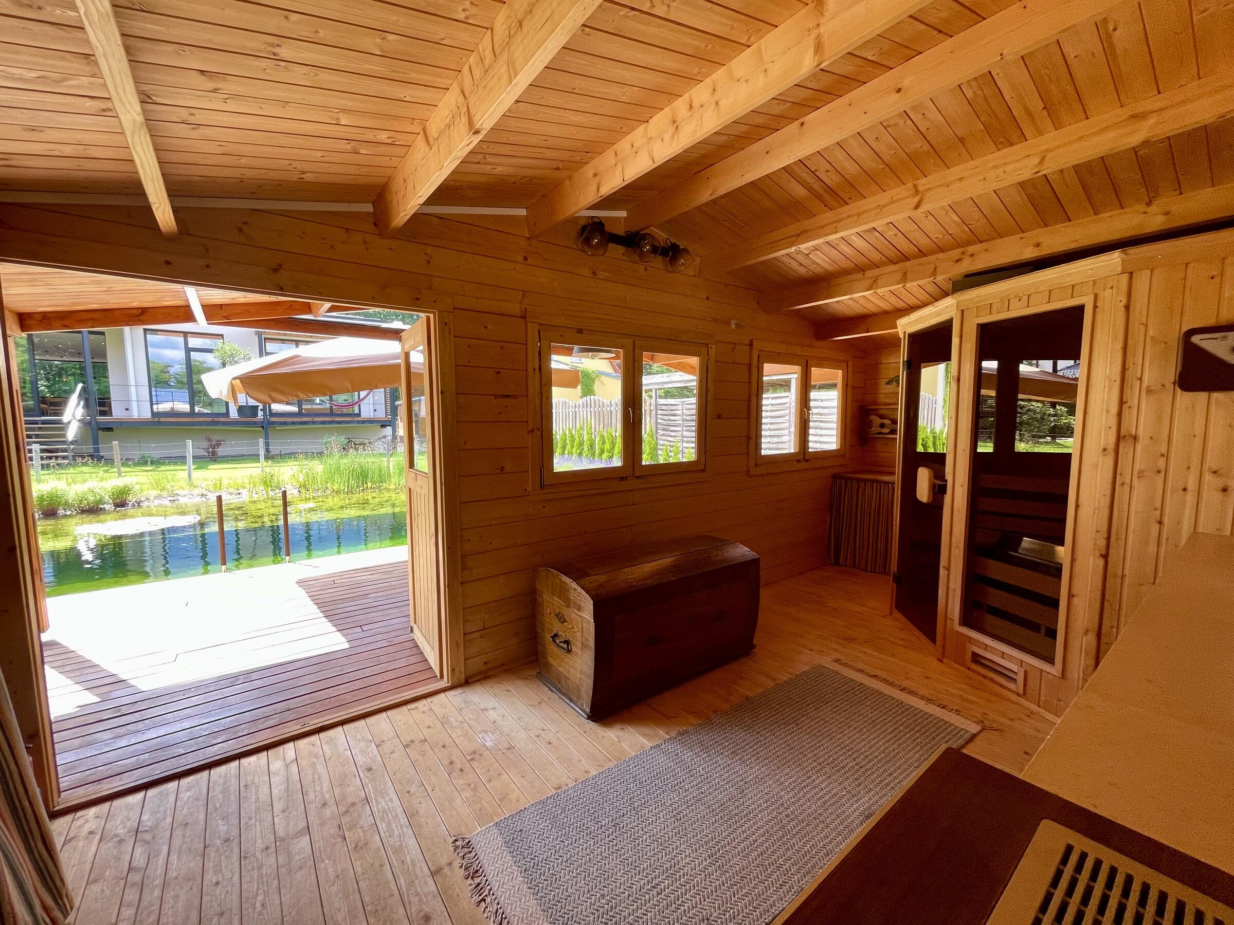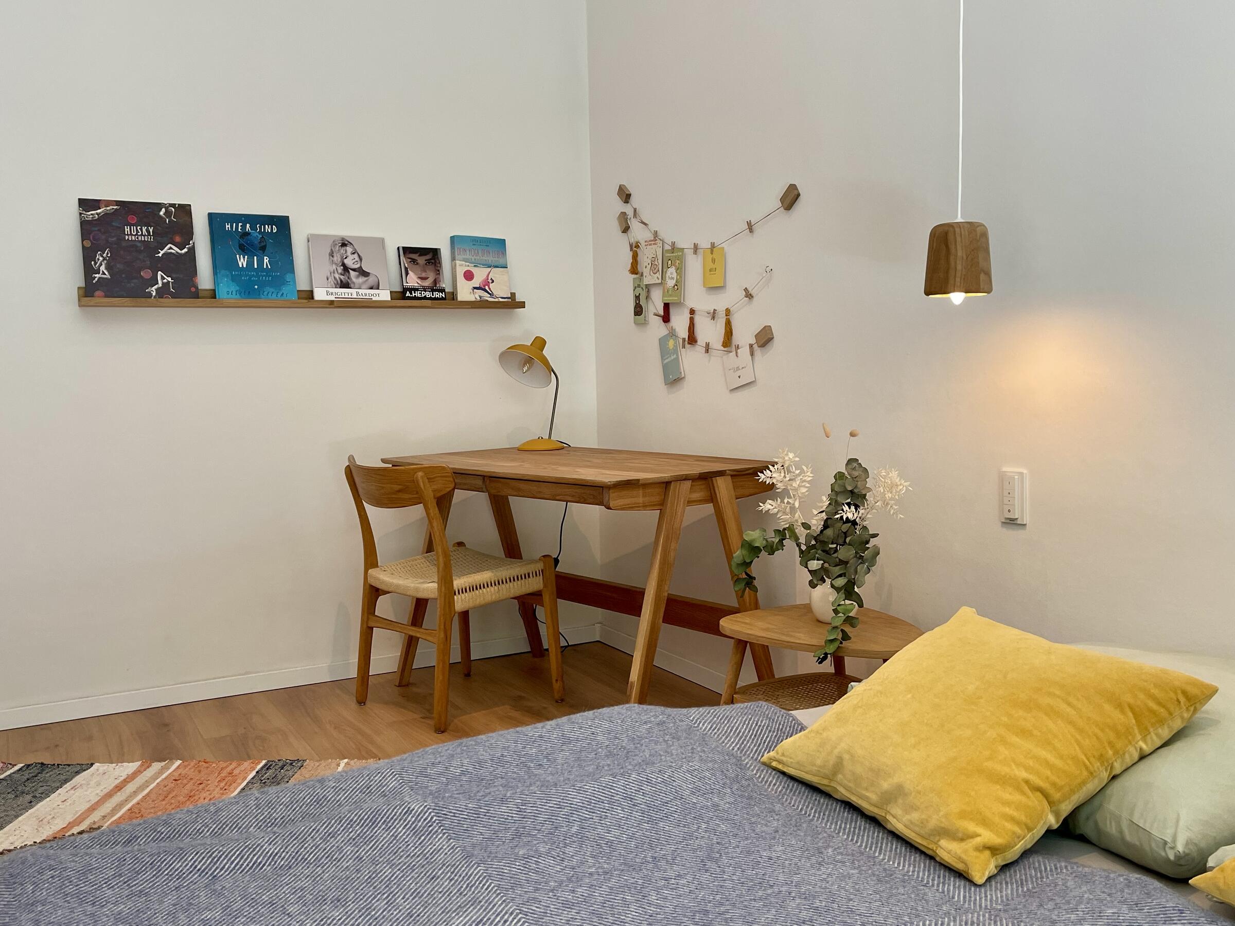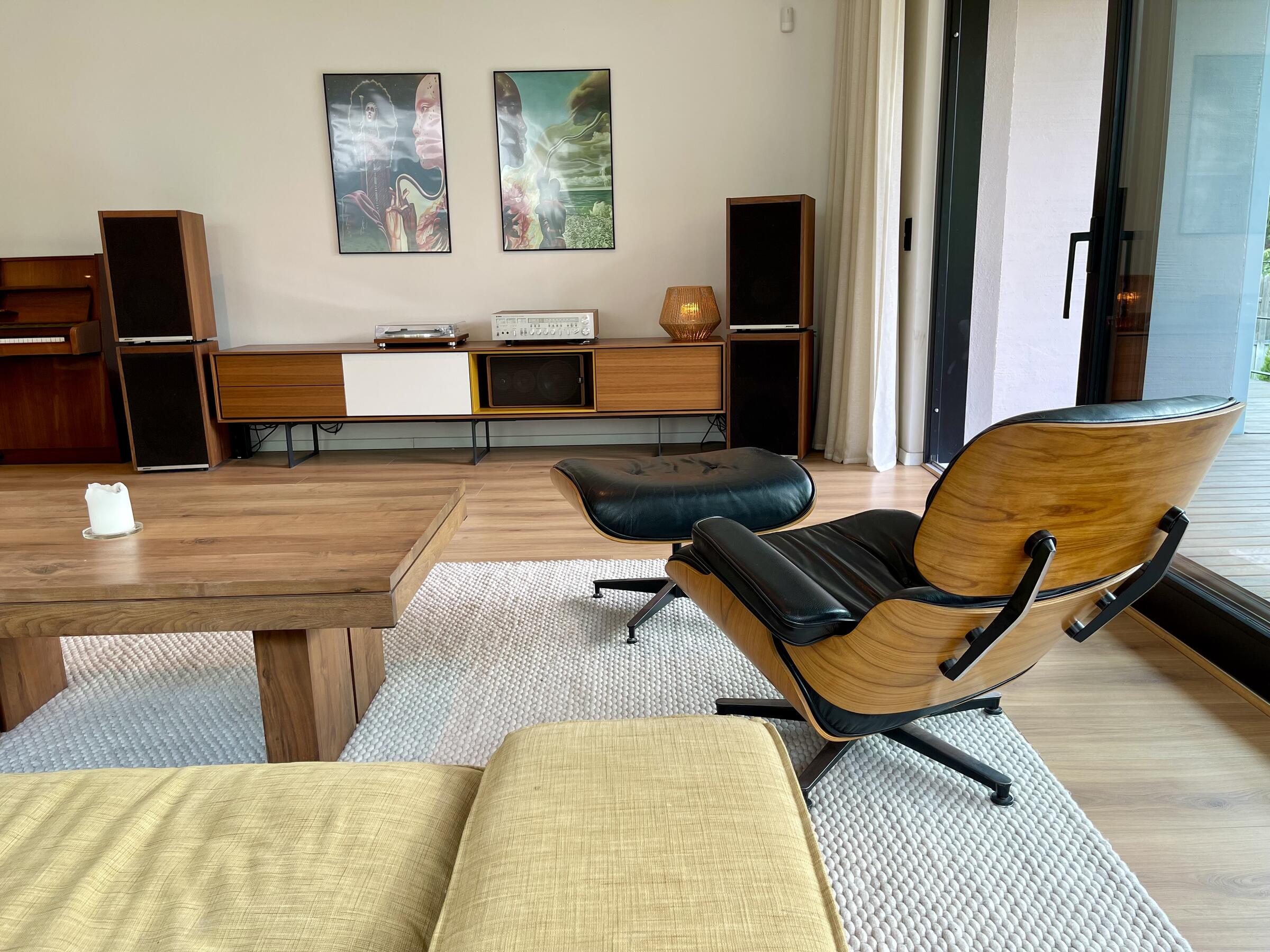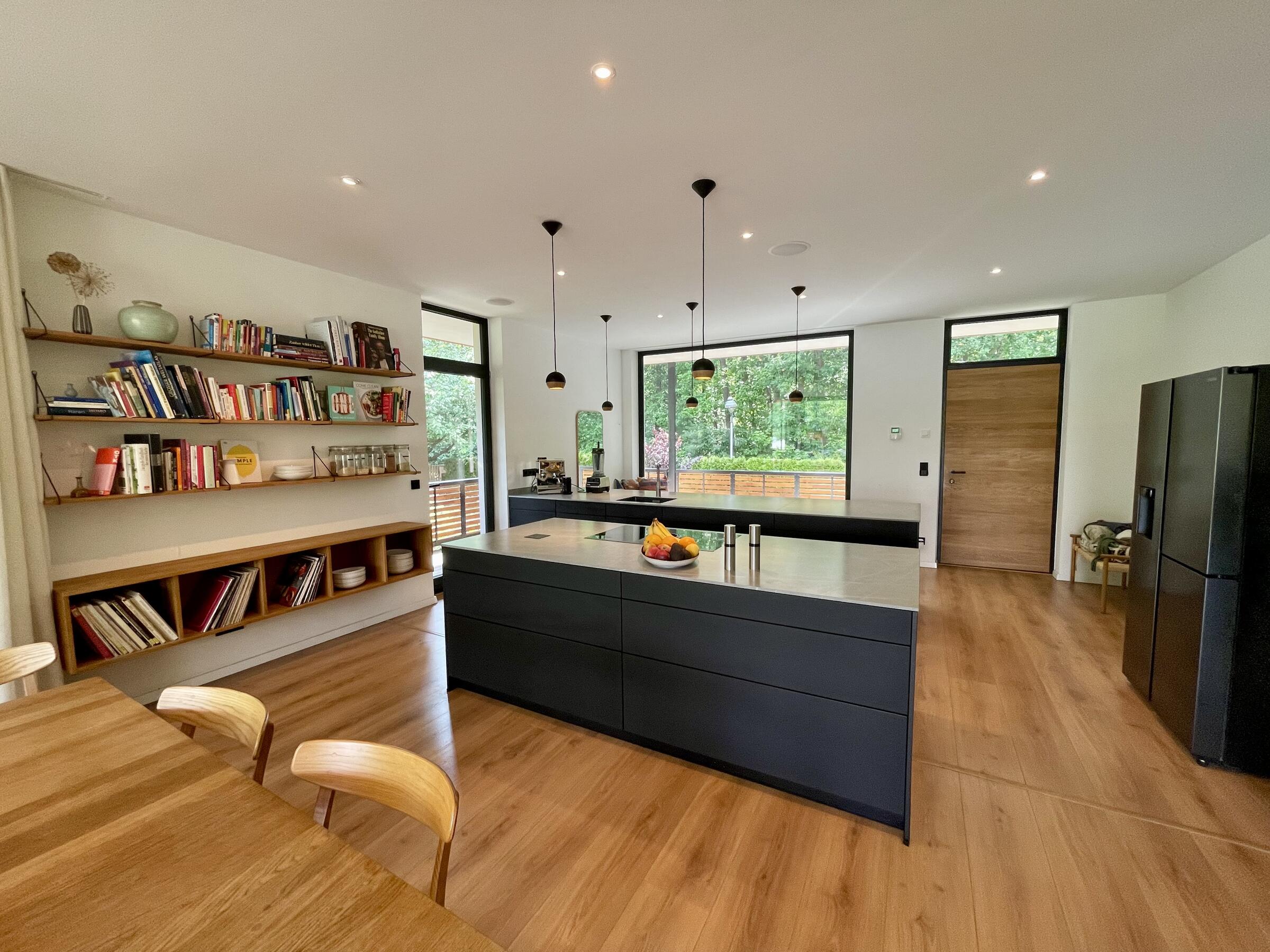 Das im Jahr 2019 im Bauhausstil errichtete Haus befindet sich in einer ruhigen Wohngegend. Der große Wohn- und Essbereich ist offen gestaltet und geht direkt in die modern ausgestattete Küche über. Durch die bodentiefen Fenster fällt viel Tageslicht in die Wohnräume. Die Fenster der Gästezimmer, des Schlafzimmers und des Musikstudios sind mit Blackout-Vorhängen ausgestattet. Die Fenster im Wohnbereich haben lichtdurchlässige Vorhänge. Die Möbel der Räume, außer des Musikstudios, dürfen ausgeräumt bzw. ausgetauscht werden. Im Außenbereich des Hauses gibt es einen Schwimmteich, einen Naturgarten, ein Saunahaus und eine umlaufende Terrasse, die alle Räume im Erdgeschoss miteinander verbindet. Auf dem Grundstück stehen 2 Pkw-Parkplätze zur Verfügung. Weitere Parkplätze gibt es auf der Straße vor dem Grundstück.