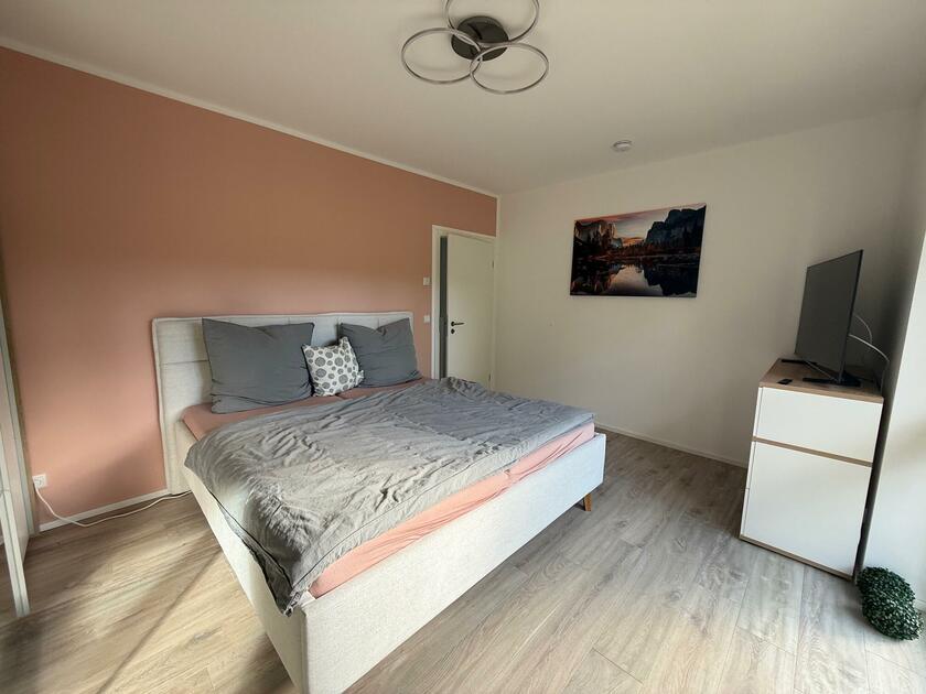 - Schlafzimmer (EG)Fläche: 16 m²Länge: 3,3 mBreite: 4,6 mHöhe: 2,4 mmöbliert: ja